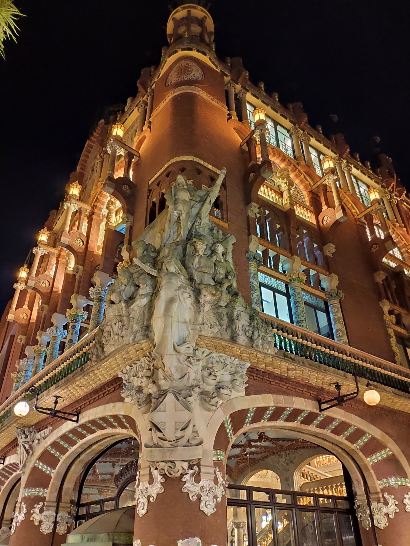 On tombe par hasard sur un des bâtiments les plus somptueux de la ville est sans doute le Palais de la Musique Catalane que l’on aura pas le temps de visiter sur ce court séjour barcelonais, on ne le verra que de l’extérieur.
