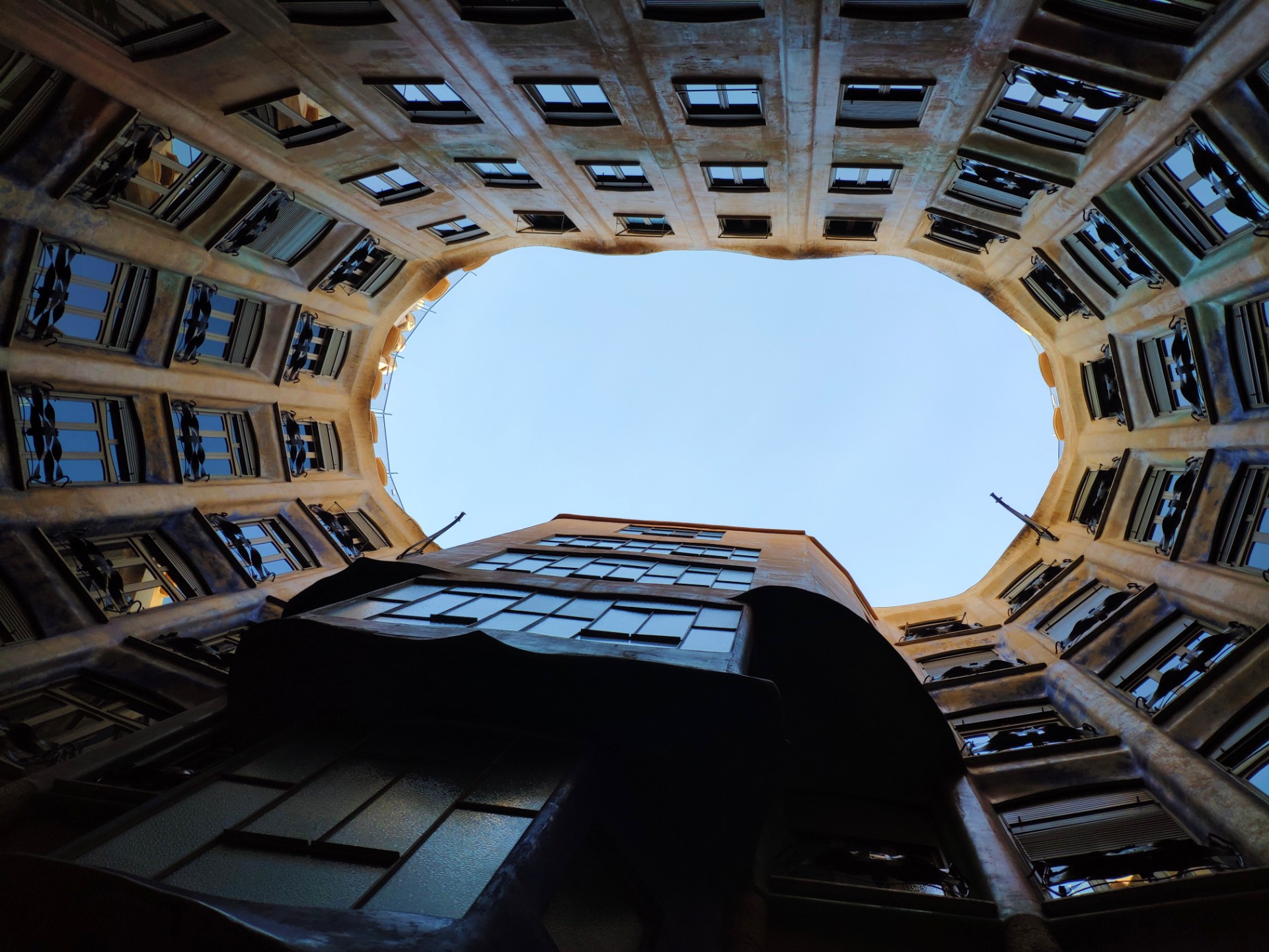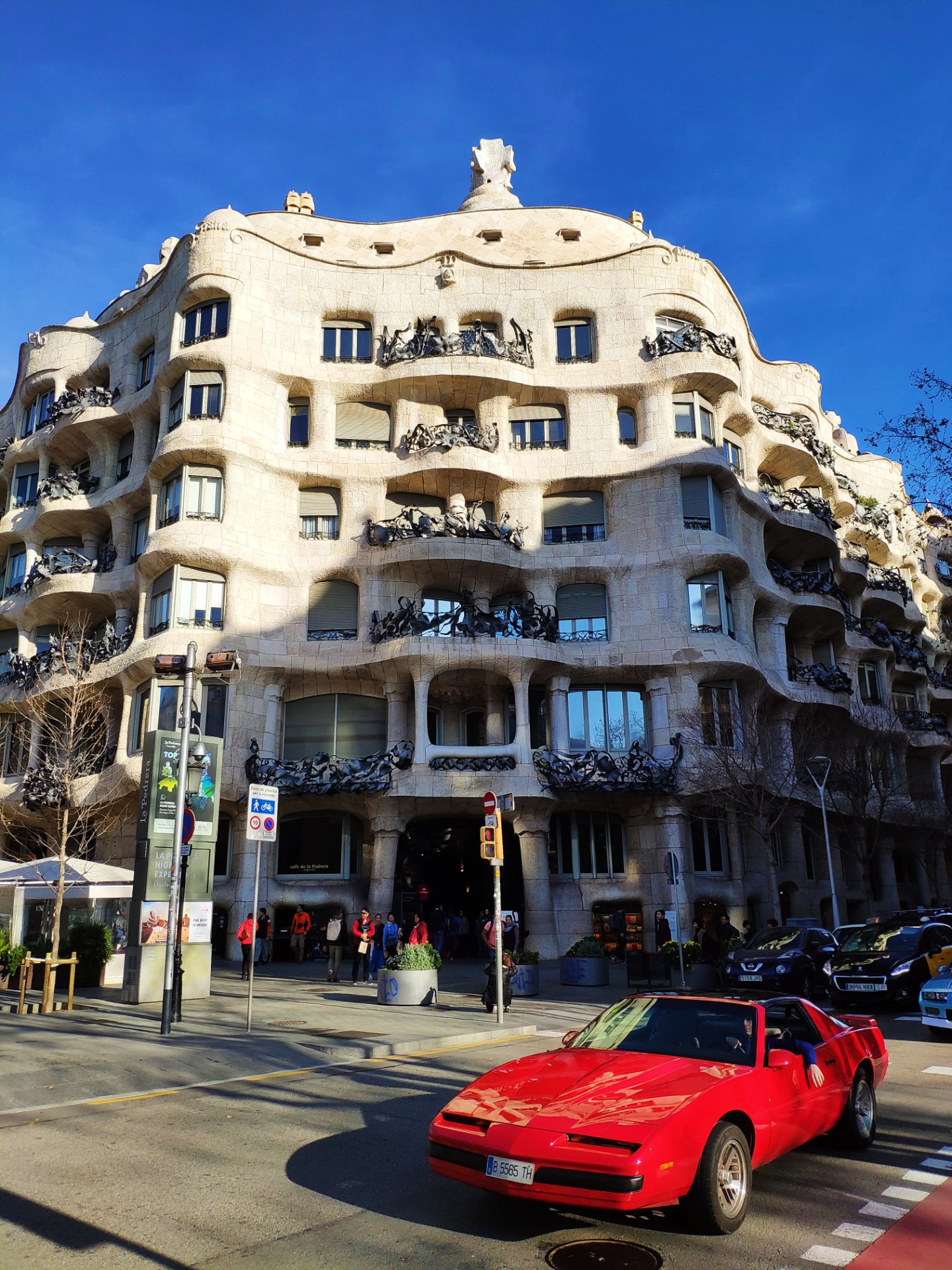 Aujourd’hui nous avons prévu de visiter les trois maisons de Gaudi, dans l’ordre la maison Mila, la maison Batllo et la moins connue maison Vicens qui sont considérés comme des chefs d’œuvre de l’architecte et classées au patrimoine mondial de l’UNESCO. Etant donné qu’elles sont très courues, il est aussi conseillé de réserver l’heure de la visite en avance pour éviter d’attendre longtemps ou pire de ne pas avoir de billet pour le jour prévu. Cela limite aussi la liberté de voyager et d’aller où on veut aller en fonction de nos envies mais d’un autre côté cela pose un cadre. Cela a des avantages et des inconvénients, on se dit que c’est de toute façon le seul moyen de laisser tout le monde profiter d’une visite sans se marcher sur les pieds. La maison Mila est un grand immeuble dans un coin d’avenue qui est aussi surnommée la carrière à cause de ses formes minérales arrondies.