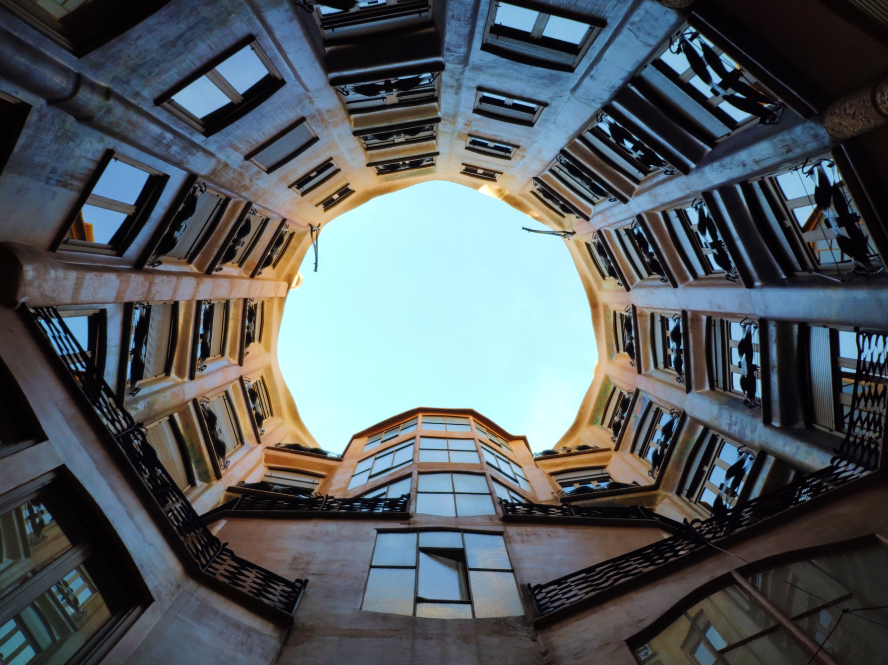Il y a deux cours intérieure dans la maison Mila, la deuxième cour intérieure circulaire a belle symétrie.