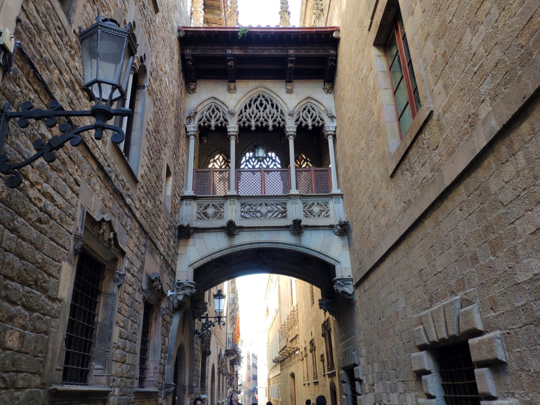 Nous retournons en centre ville pour notre dernière après midi de notre week-end barcelonais. Nous passons à proximité de l’évêché où se trouve un passage qui connecte avec le bâtiment du gouvernement.