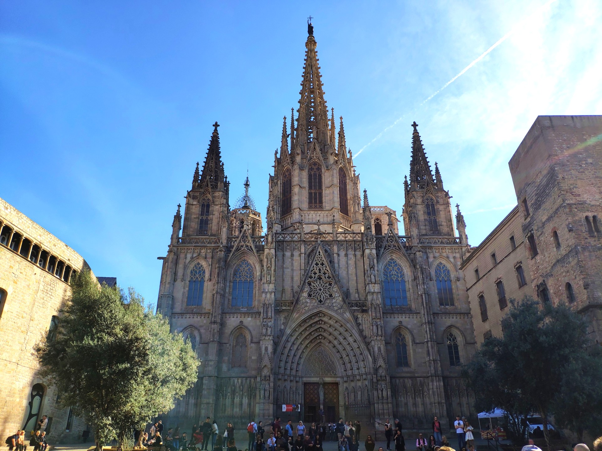 On repasse devant l’imposante cathédrale de Barcelone, de jour cette fois.
