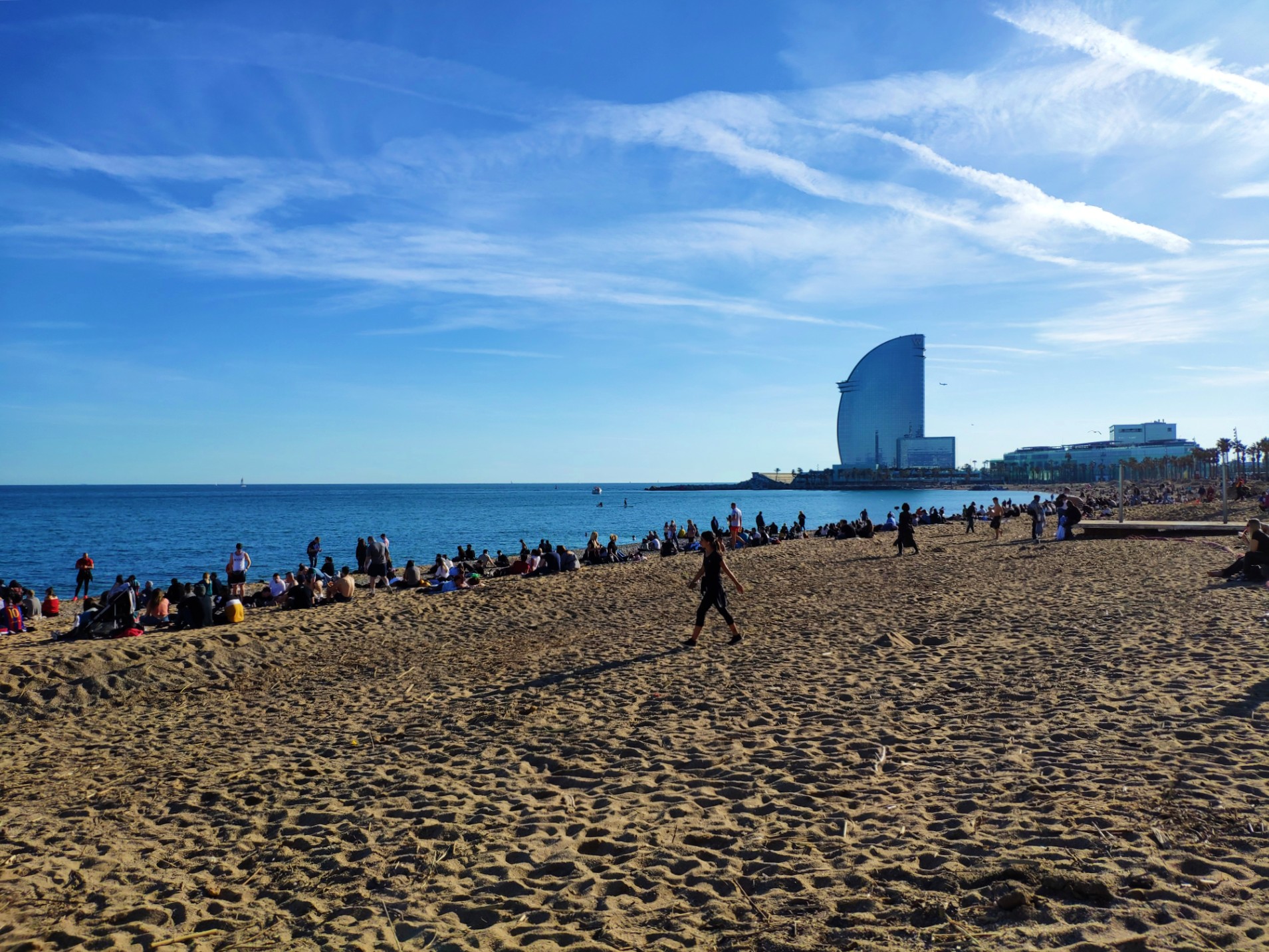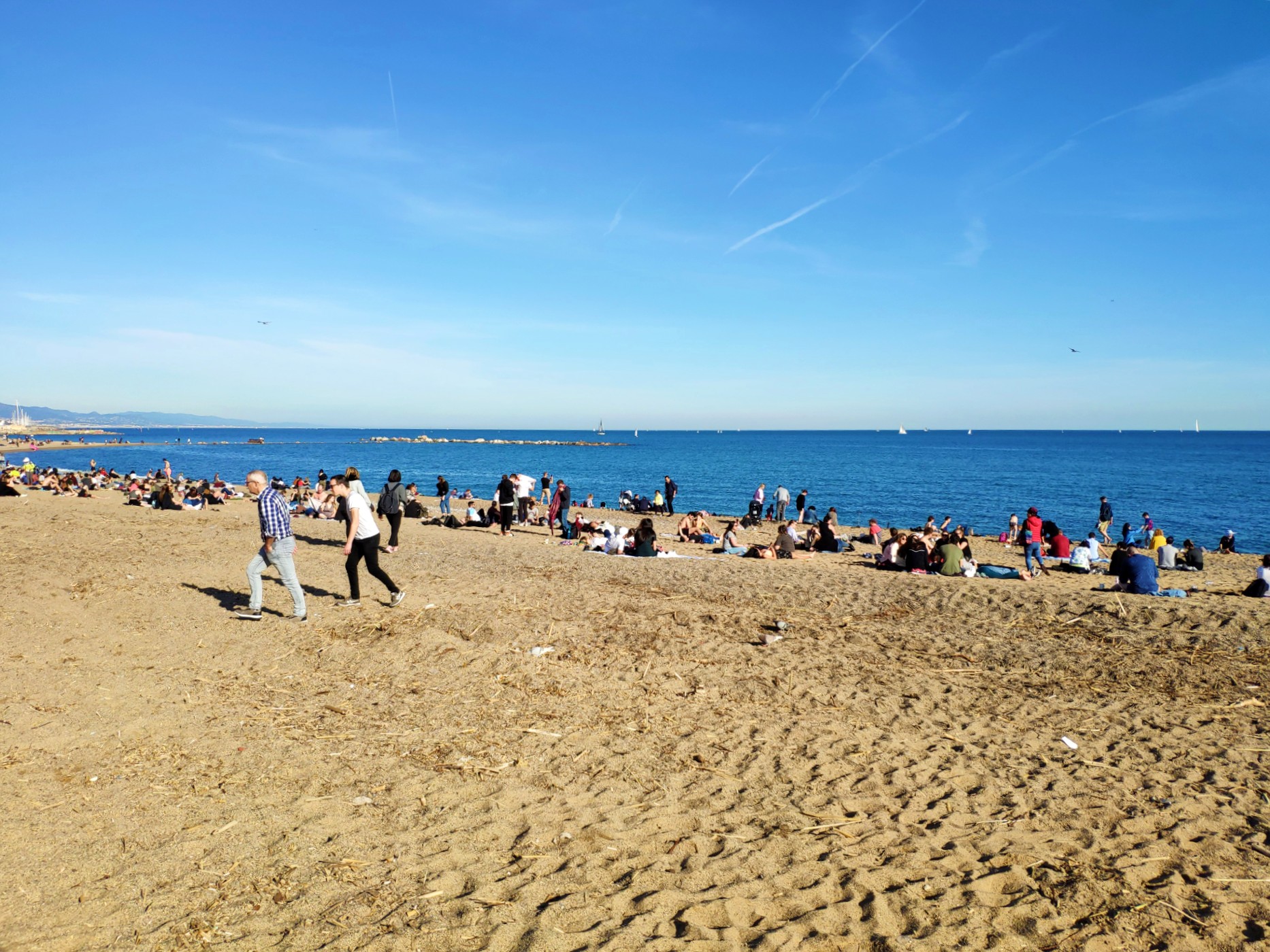 Avant de partir pour l’aéroport, nous passons par la plage de Barceloneta, pour avoir au moins un aperçu de la partie balnéaire de la ville, et surtout avant de reprendre un avion pour les montagnes.