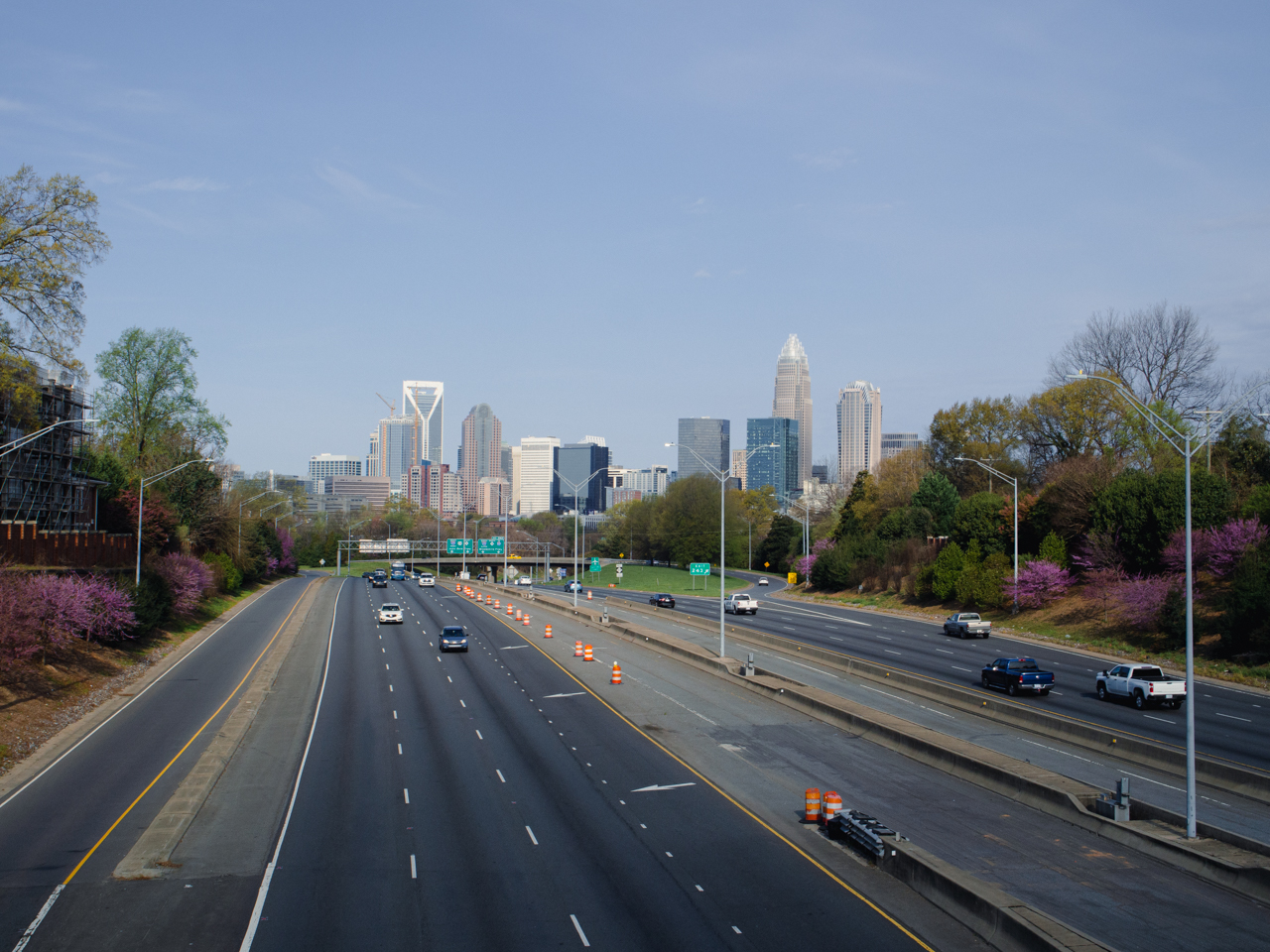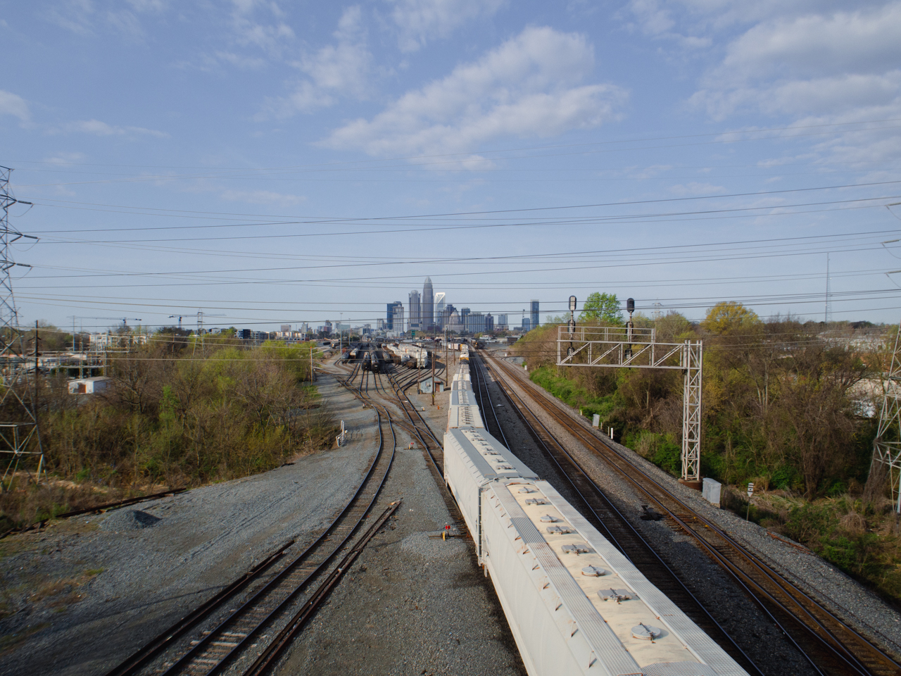 En entrant en ville, on ne peut manquer la vue depuis le pont de la Matheson Avenue dans le district de NoDa. On peut se garer un peu avant le pont qui enjambe la voie ferrée qui semble filer droit sur la skyline.