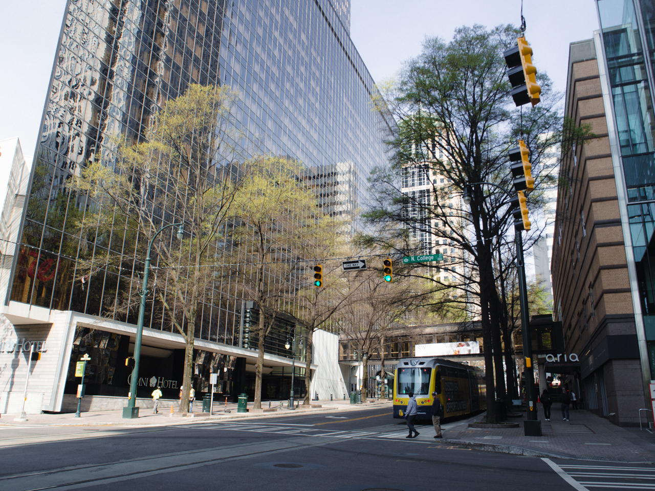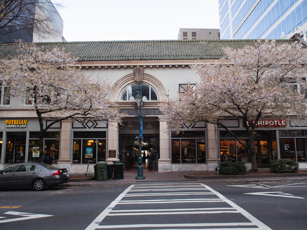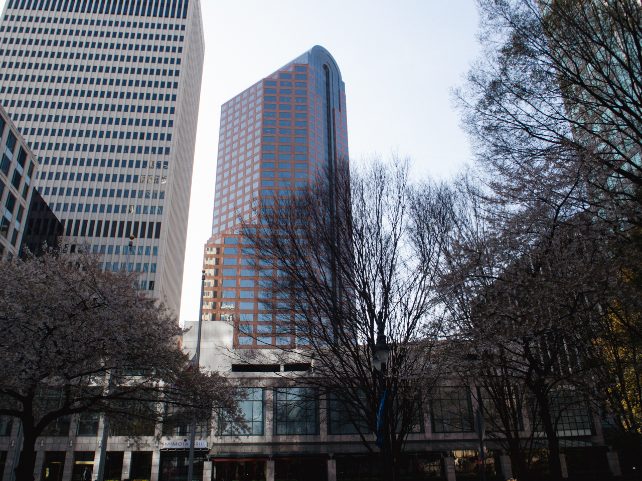 On est quand même dans le Downtown entouré de grandes tours, normal Charlotte est le deuxième plus grand centre bancaire des Etats Unis après New York. Je note une grande différence avec les grandes villes asiatiques, c’est la place qui est réservé aux parkings à côté des tours. Bien qu’un tramway circule dans le quartier, les gens semblent surtout dépendre de leur voiture pour venir travailler, et de grands parkings sur plusieurs étages sont construits avec des accès directs aux étages des tours, c’est très pratique.