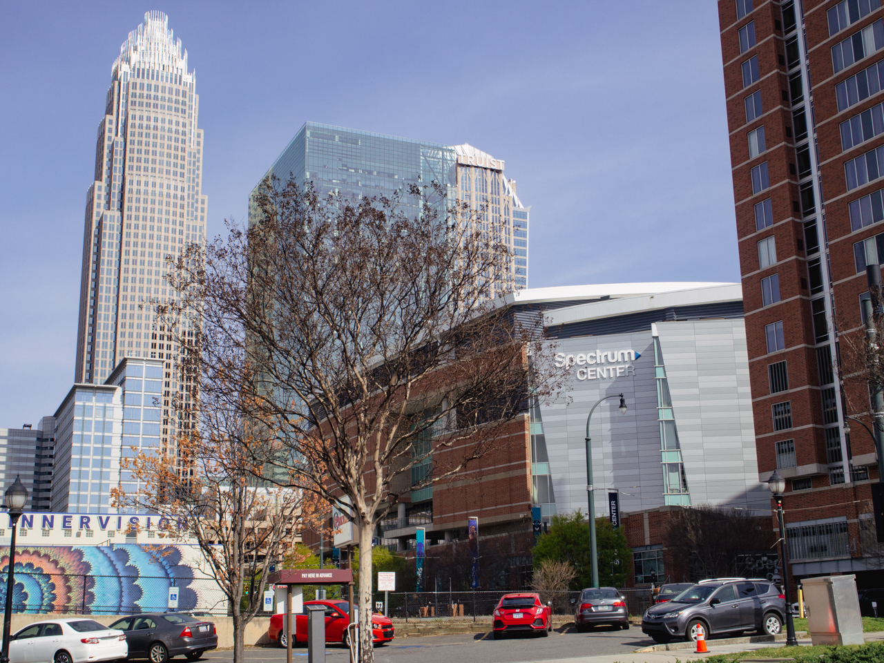 J’arrive au mythique stade des Charlotte Hornets, le Spectrum Center.