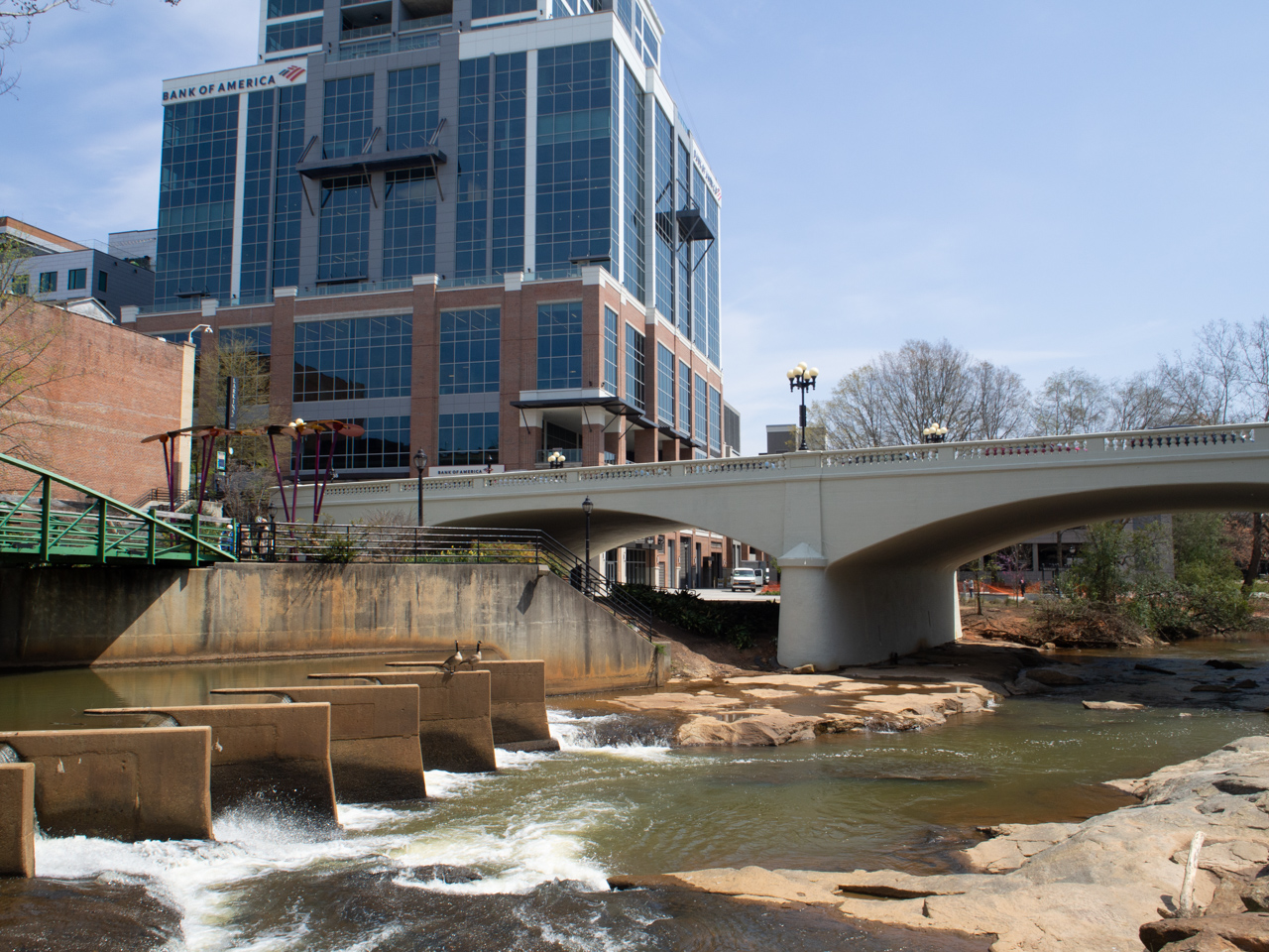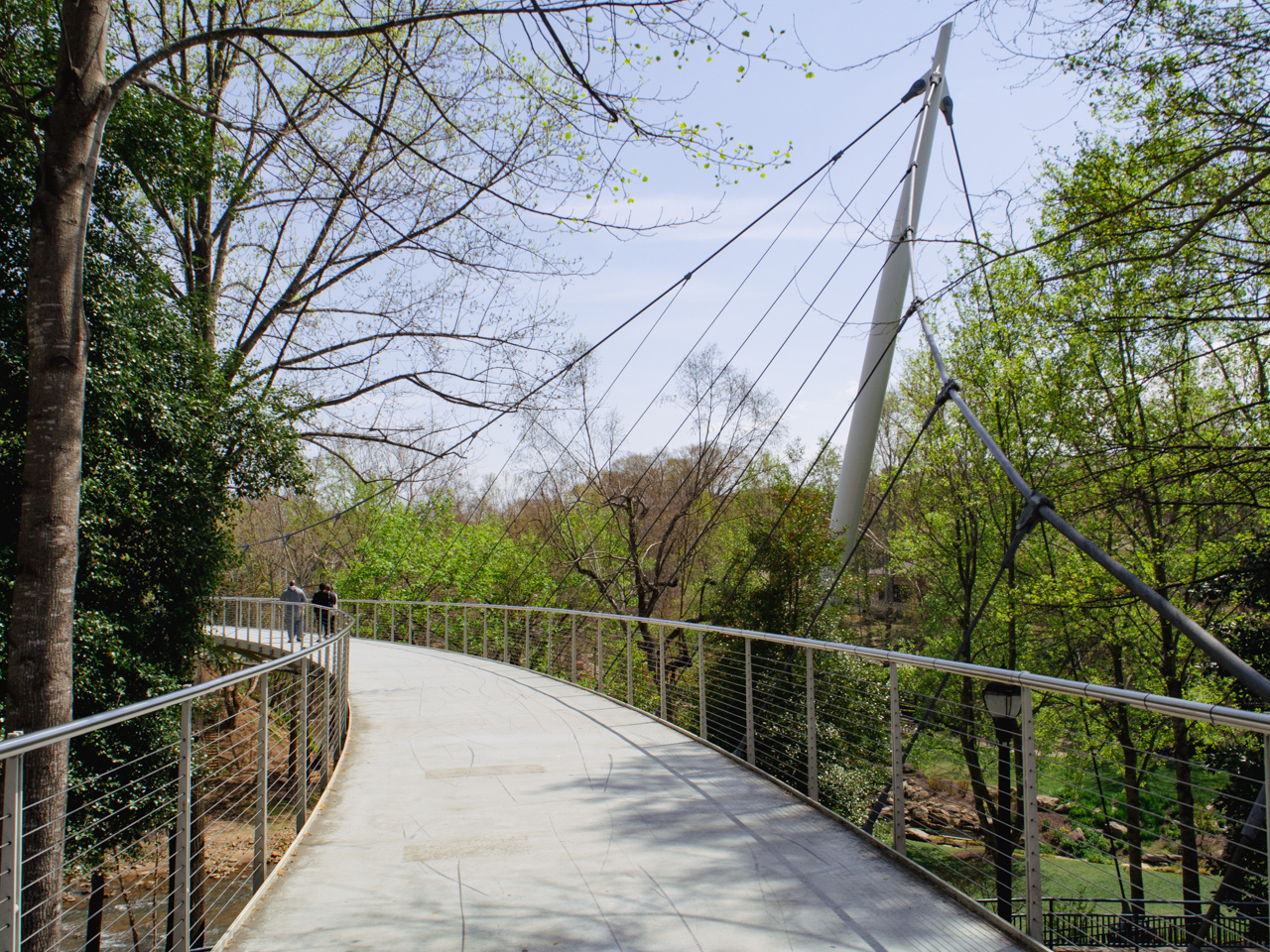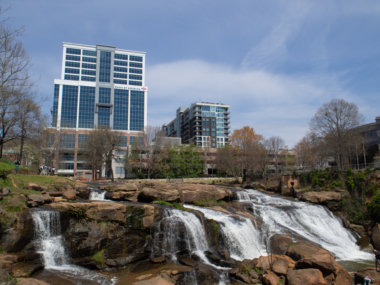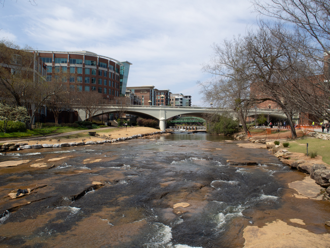 Depuis la vibrante Charlotte, on file sur l'interstate I-85 jusqu'à Greenville, ville industrielle de l'Upstate de la Caroline du Sud qui est la prochaine étape de notre voyage. Au pied des Appalaches, son centre ville est mignon avec ses maisons de brique. Sa principale attraction est le parc Falls avec le pont suspendu qui enjambe la rivière Reedy.