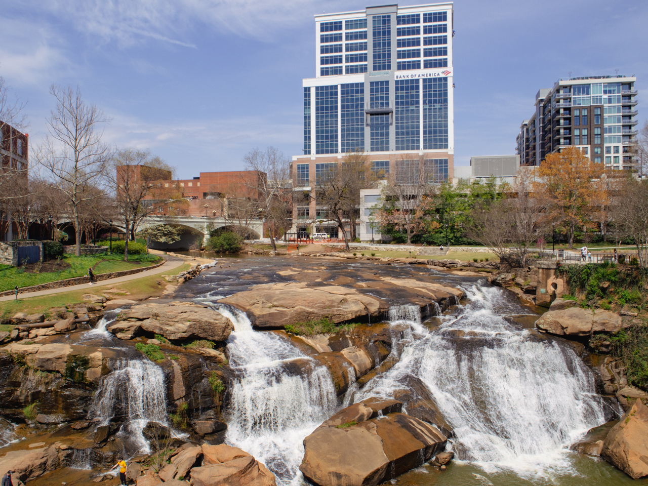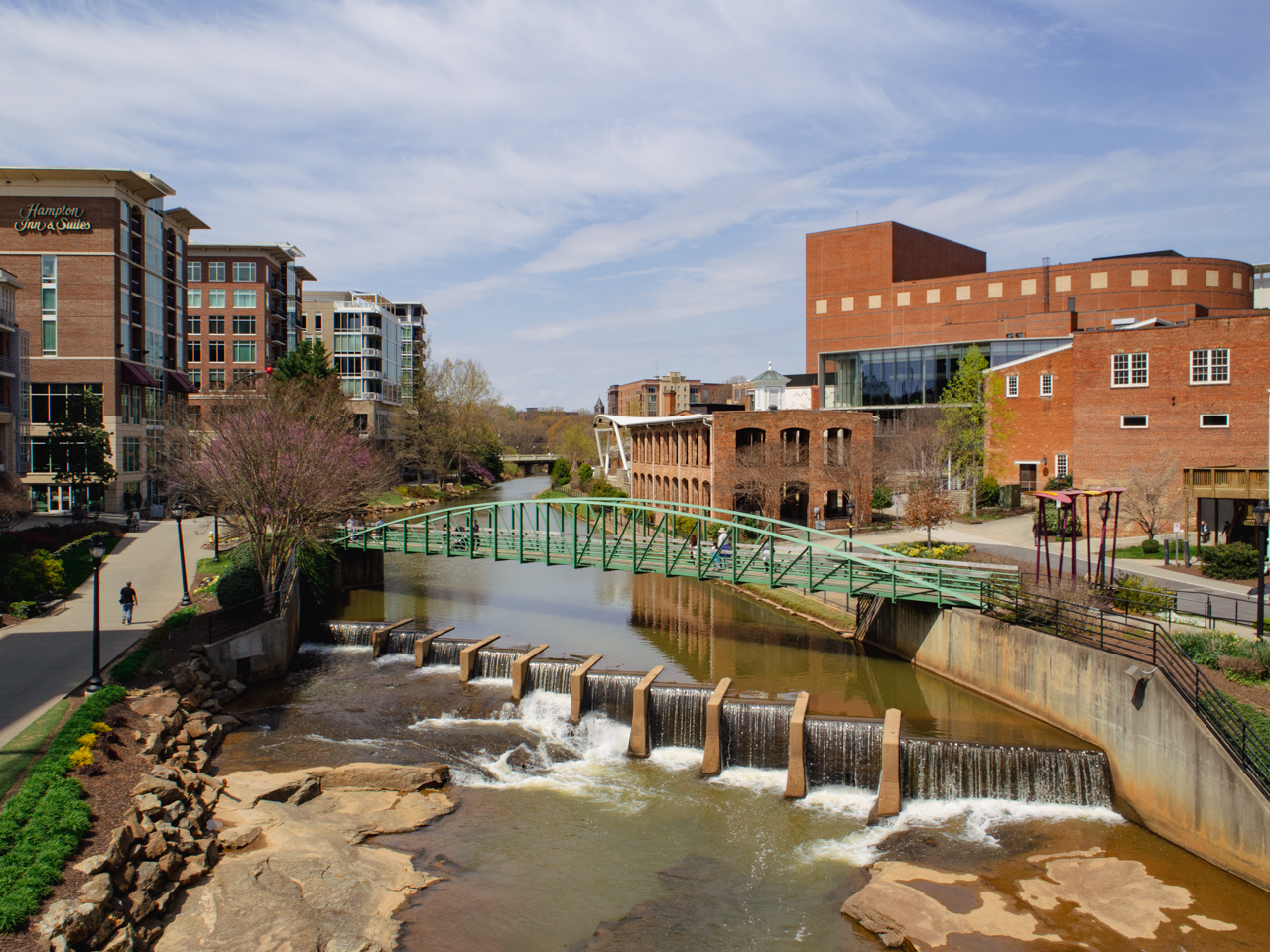 La ville se trouve sur l’axe Charlotte - Atlanta très industriel, avec une population d’un peu plus d’un million éparpillé dans la grande aire urbaine. Les rives de la rivière Reedy ont été réaménagés et l’auto pont qui passait en pleine ville a laissé la place à un superbe parc qui mérite le détour.