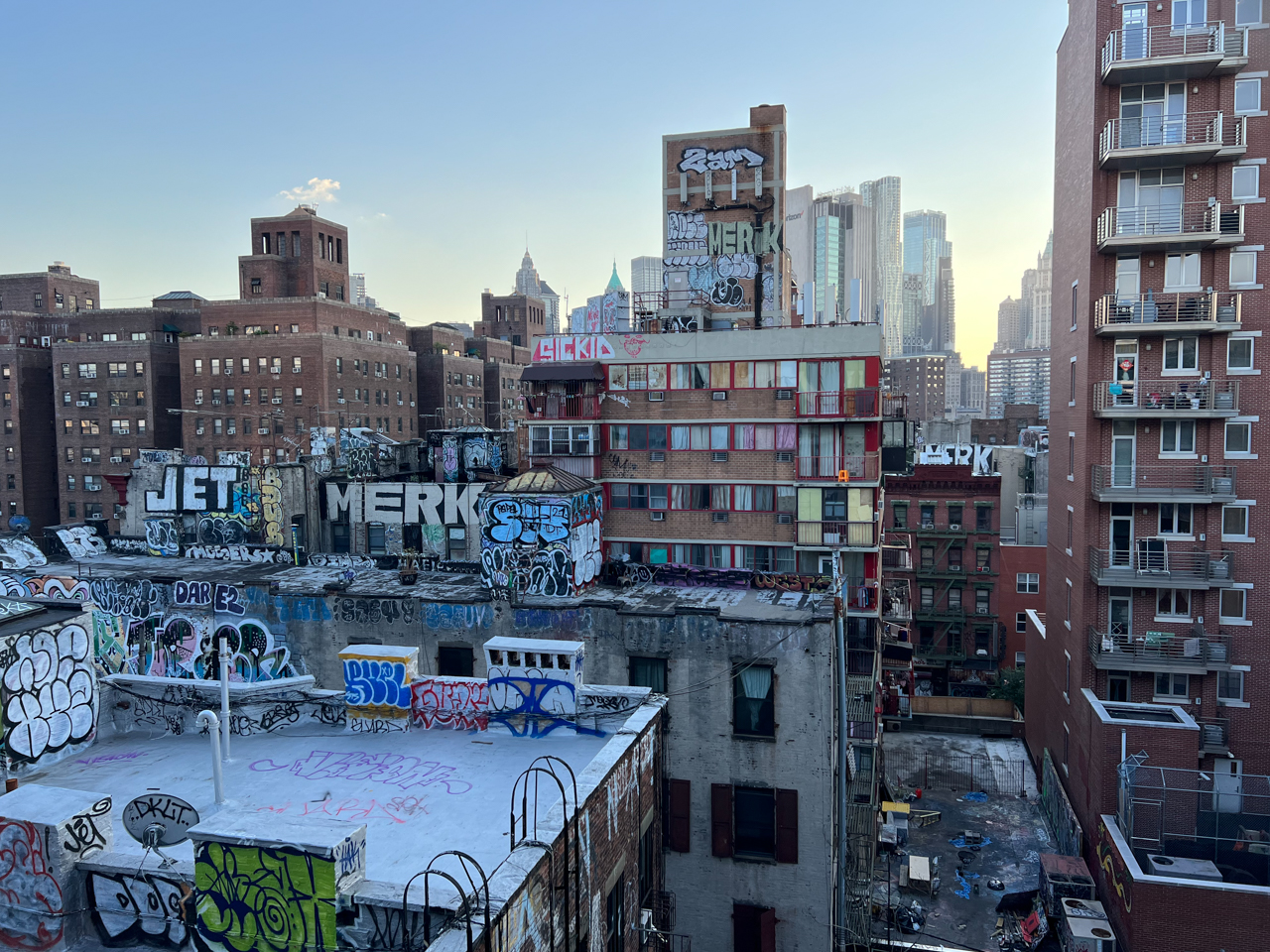 La vue sur les toits du quartier de Chinatown est splendide avec les tours du quartier financier en arrière plan. Il y a beaucoup de peinture sur les toits terrasses des immeubles, cela donne une ambiance délabrée.