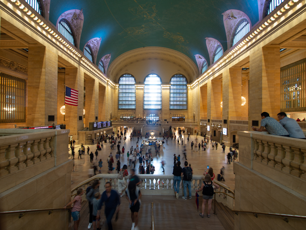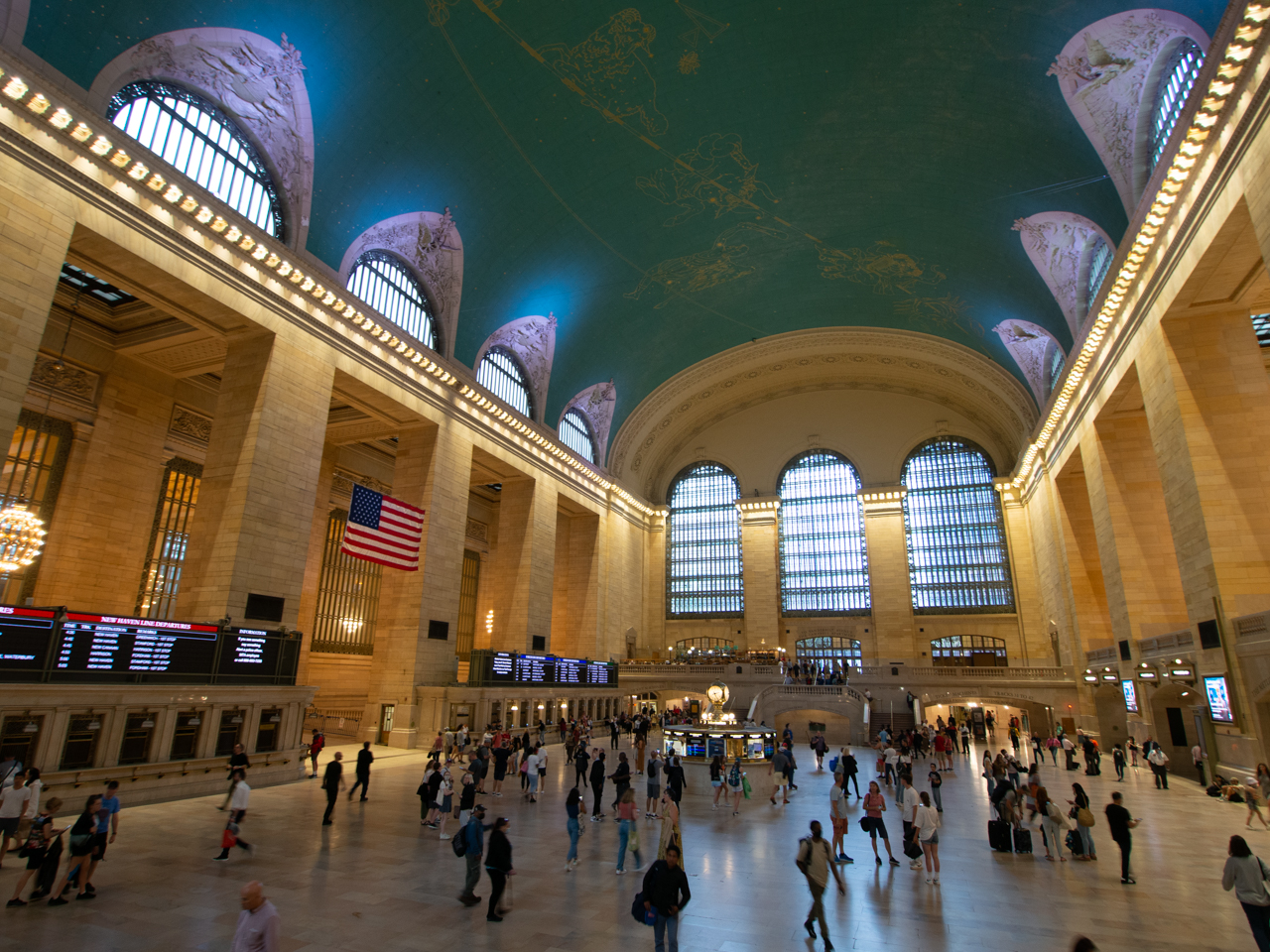 Puis on prend le métro express qui nous dépose en quelques minutes la station ferroviaire principale de Manhattan, Grand Central. Le hall de la gare est magnifique, avec son plafond qui représente le ciel avec les différents signes du zodiaque.