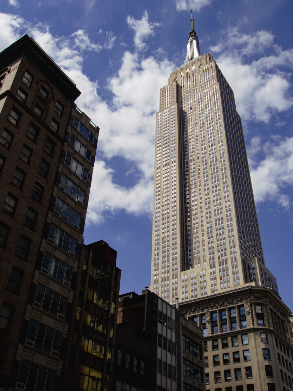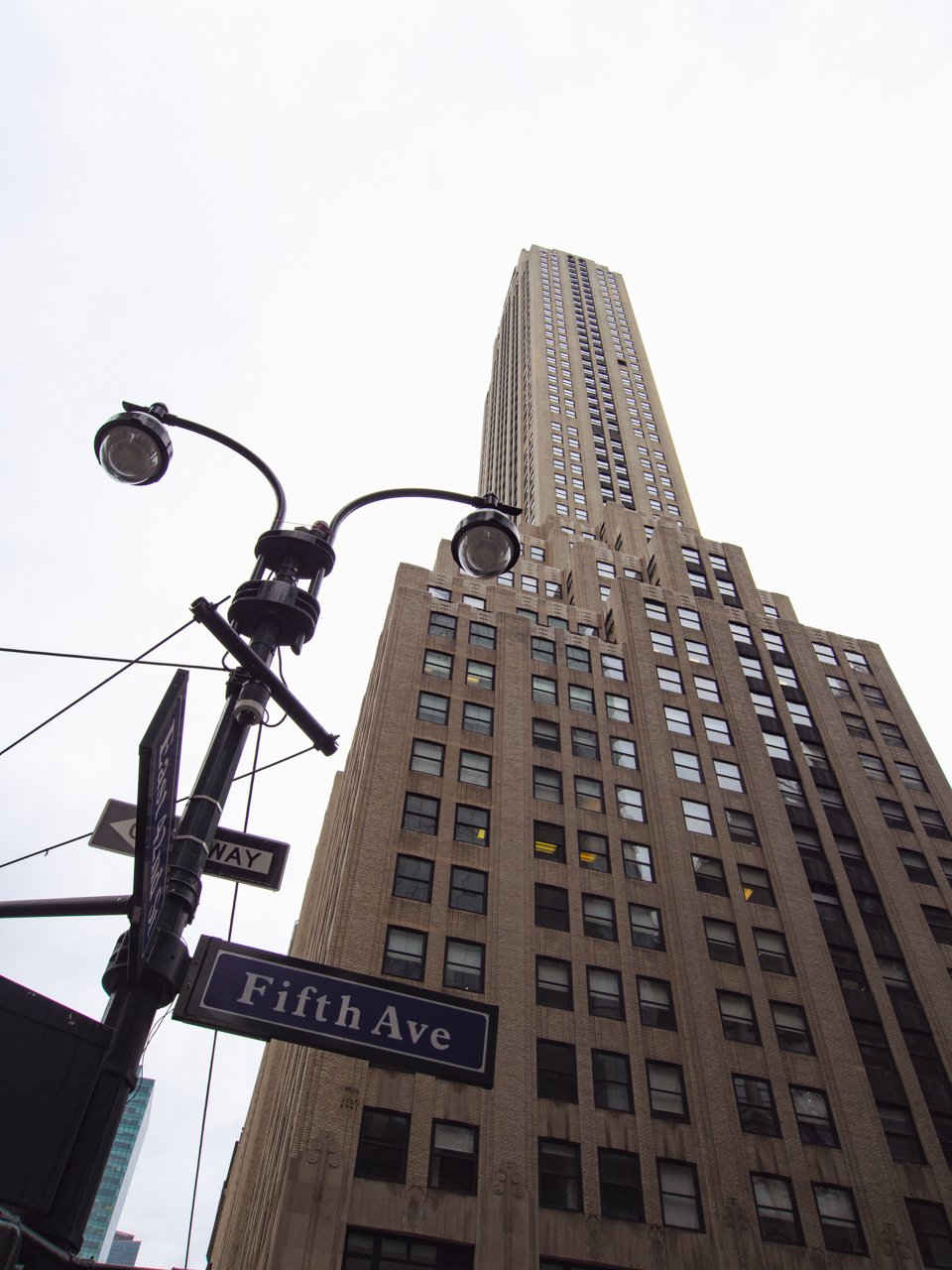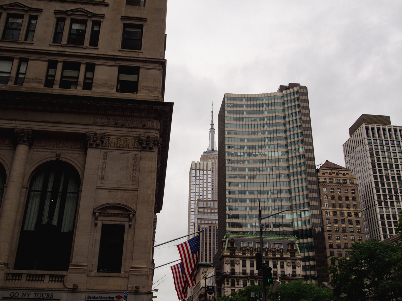 A la sortie du parc, on a une vue directe et avantageuse sur l’Empire State Building, le dernier des quatre bâtiments qui pour moi résument le mieux l’architecture new-yorkaise (avec le Rockefeller Center, le Chrysler Building et le Flat iron). Mais de ces quatre bâtiments, c’est clairement l’Empire State Building qui les surpasse tous avec sa taille imposante, sa flèche argentée, et sa place centrale dans la culture populaire. C’est un des plus grands symboles de New York.