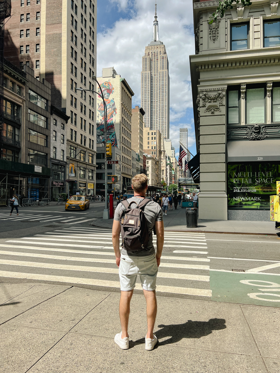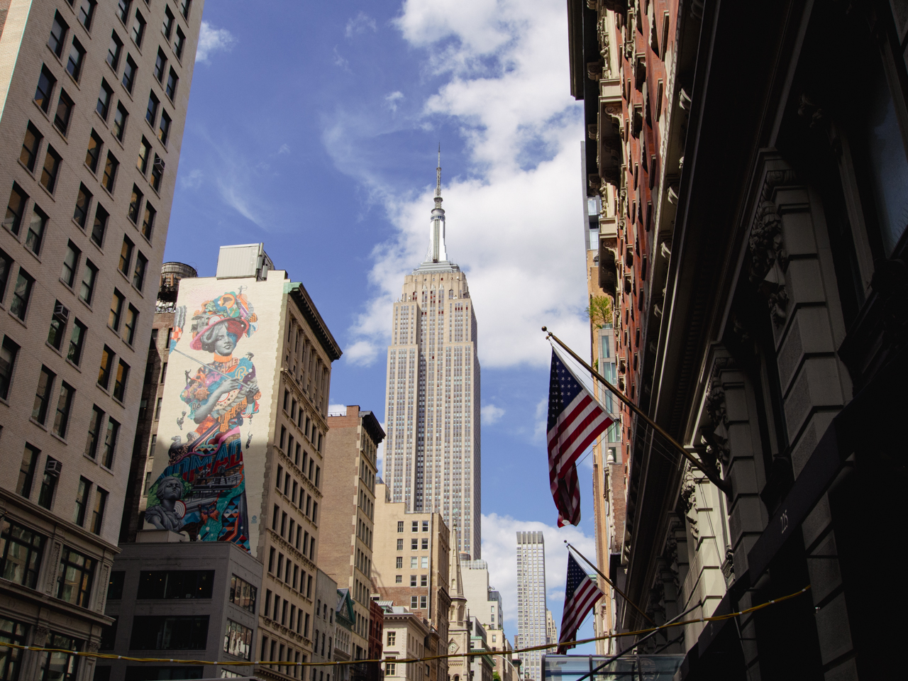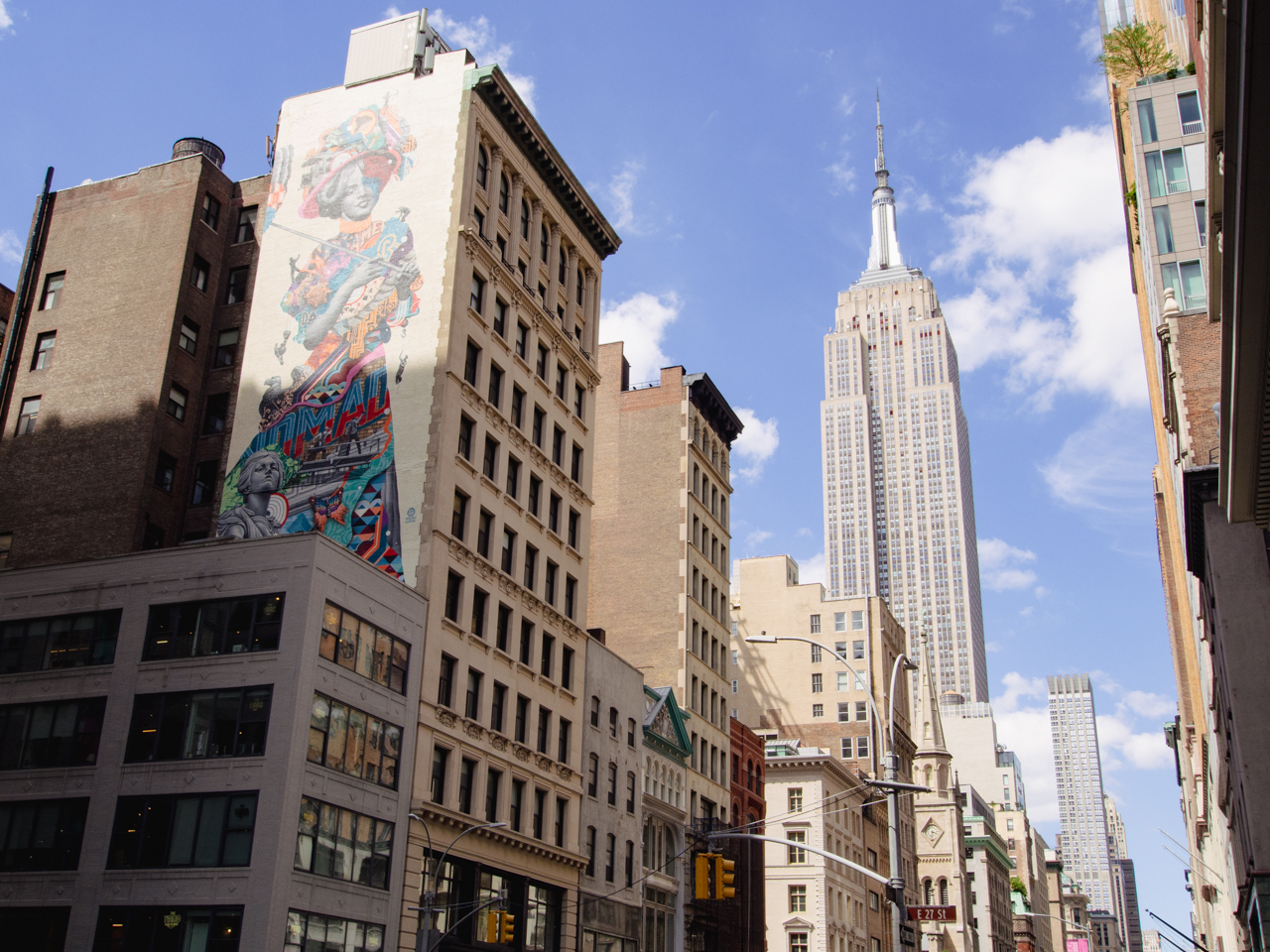 A la sortie du parc, on a une vue directe et avantageuse sur l’Empire State Building, le dernier des quatre bâtiments qui pour moi résument le mieux l’architecture new-yorkaise (avec le Rockefeller Center, le Chrysler Building et le Flat iron). Mais de ces quatre bâtiments, c’est clairement l’Empire State Building qui les surpasse tous avec sa taille imposante, sa flèche argentée, et sa place centrale dans la culture populaire. C’est un des plus grands symboles de New York.