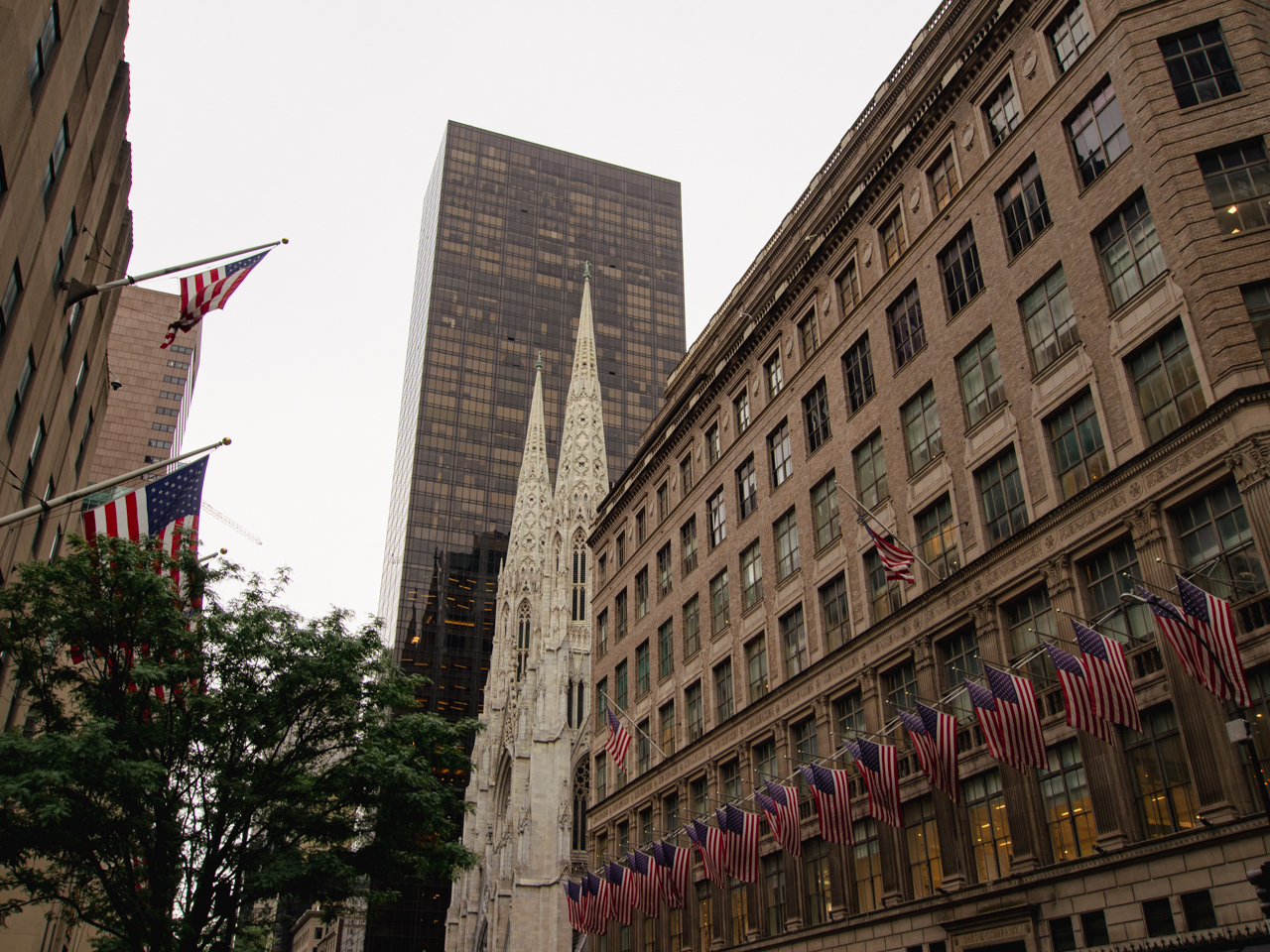 On remonte l’avenue en visitant les différents magasins qui nous attirent. Il y a beaucoup à voir, New York est vraiment une destination shopping par excellence, mais le taux de change actuel refroidit quand même pas mal nos ardeurs. On remonte l’avenue jusqu’à la Cathédrale de Saint Patrick avec ses grandes flèches qui tentent de garder une certaine grandeur au milieu de Manhattan.