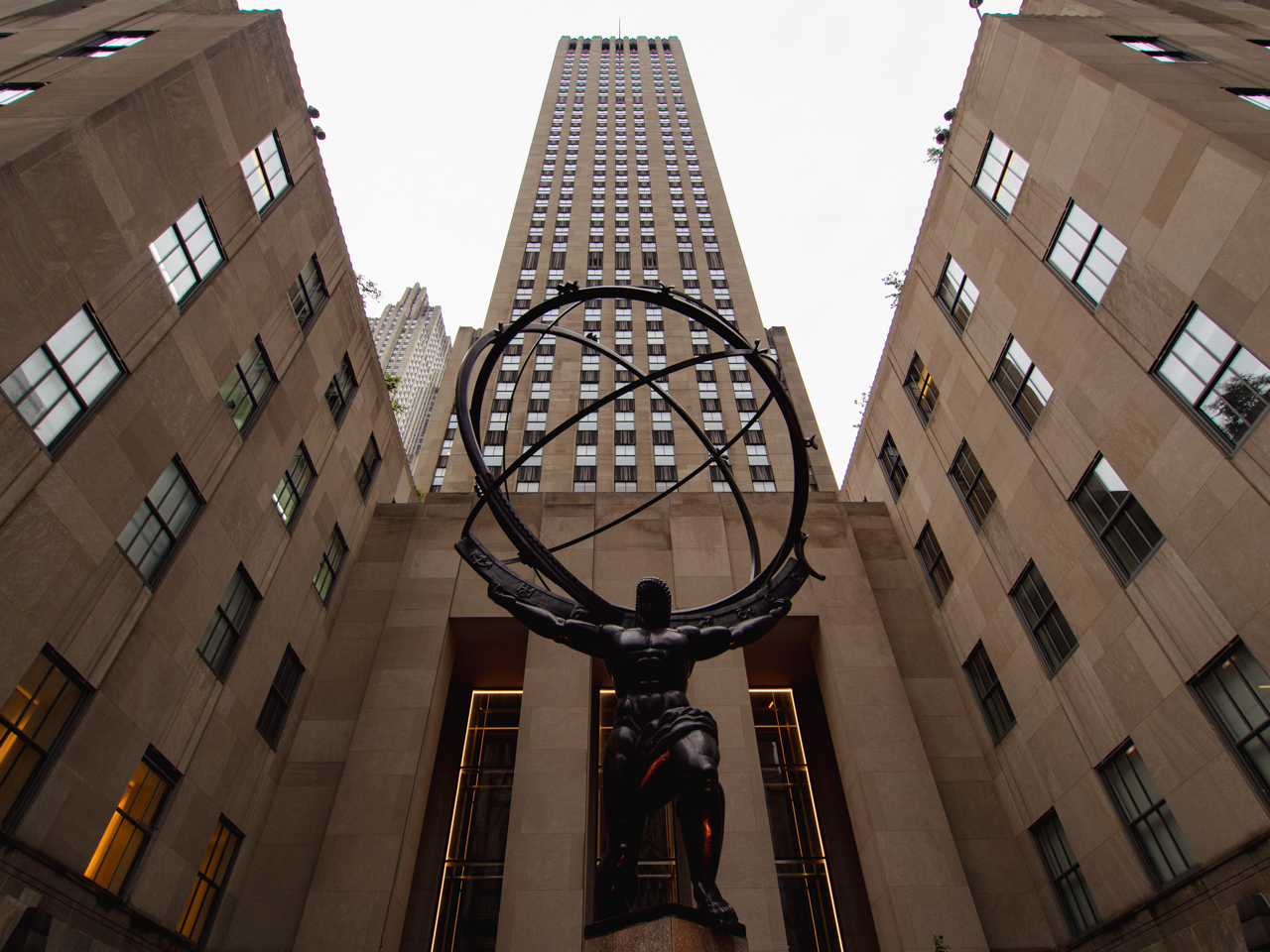 Le Rockfeller Center que l’on a visité la veille est impressionnant depuis sa base, avec cette belle statue art déco bodybuildée.