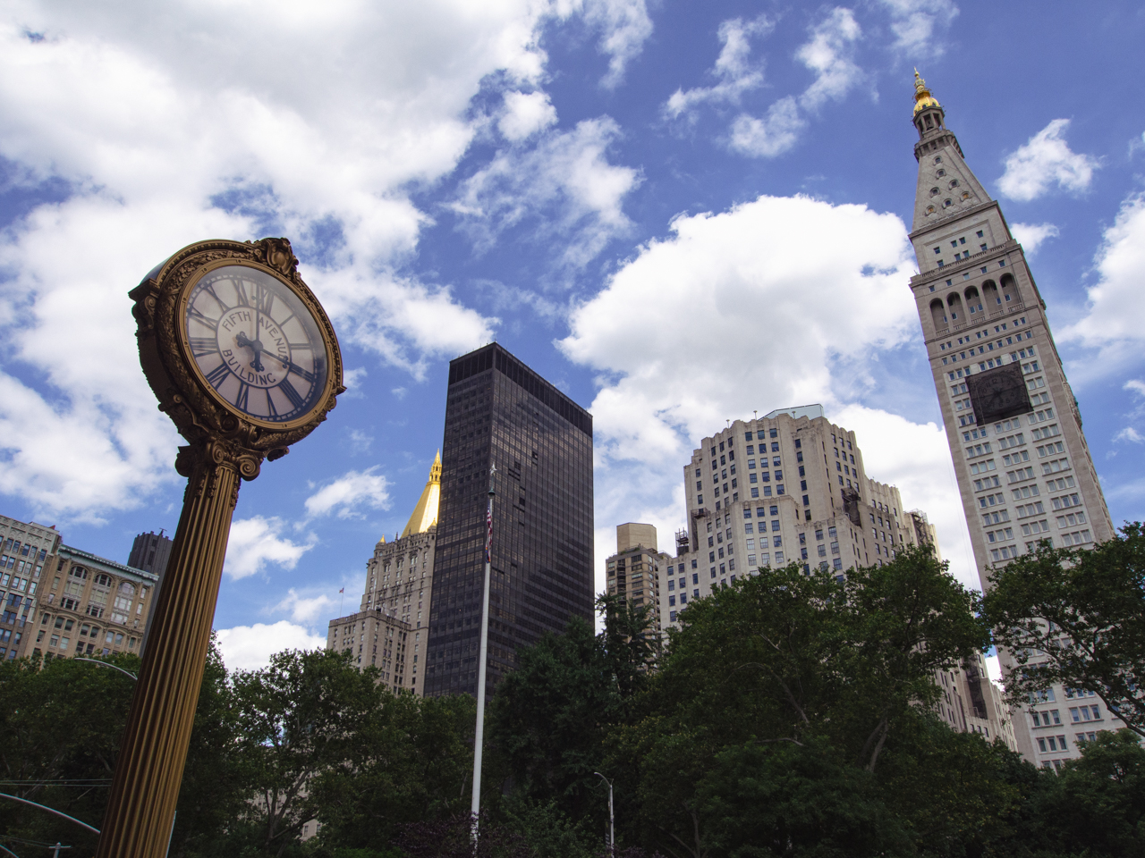Il y a des chaises pour s’installer au carrefour devant le Flat iron, les bâtiments autour de Madison Square sont luxueux, avec une profusion de doré.