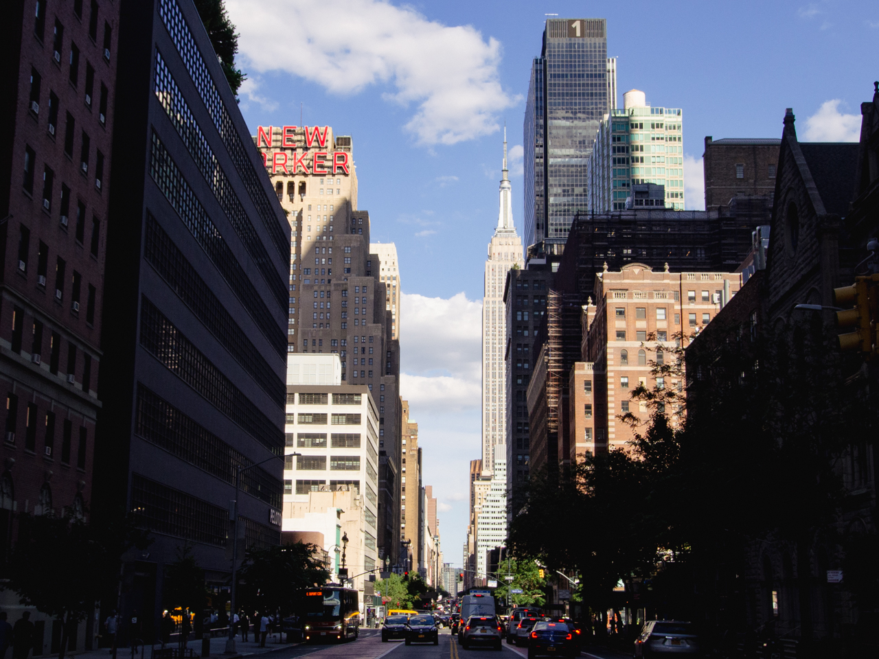 On aperçoit l’imposante structure de l’Empire State Building au milieu de cette forêt de béton.