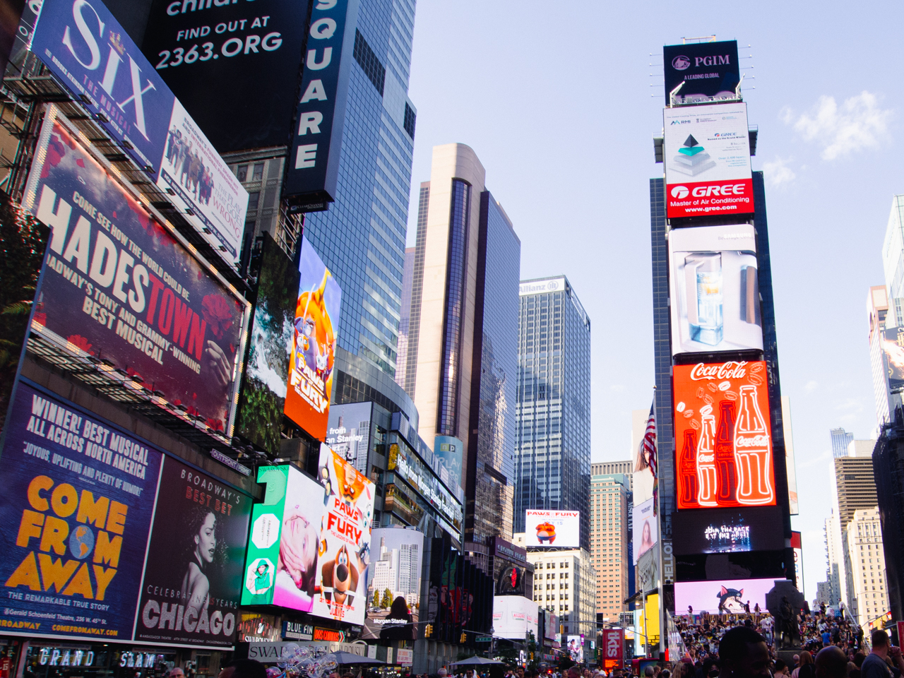 Mais on n’a pas trop le temps, on a réservé une soirée dans un des théâtres de Broadway pour voir le spectacle de Chicago. Le théâtre se trouve à côté de Times Square. C’est une bonne opportunité de revoir cette place de jour, c’est aussi impressionnant que de nuit avec toujours beaucoup de monde et les écrans qui diffusent des pubs de partout.