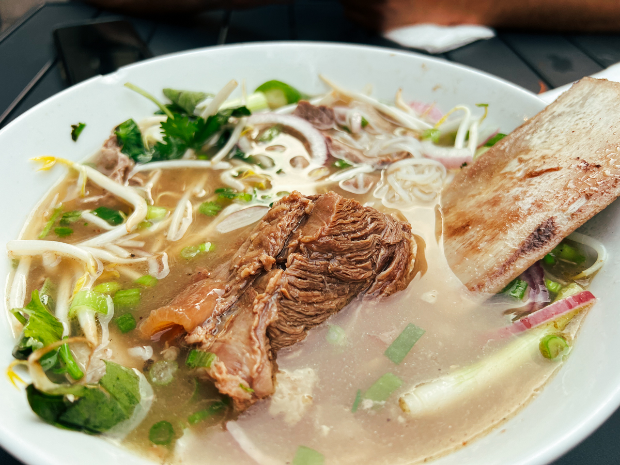 Cette journée shopping nous a épuisé. Nous ne sommes pas rentré faire notre sieste réparatrice et on paye l’addition en fin de journée. On rentre sur Lower Manhattan pour manger vietnamien dans un quartier résidentiel, en quelques stations de métro, on passe de l’extravagance de la 5e avenue à un quartier calme de petits immeubles avec escaliers extérieurs. On mange sur le trottoir un bol de nouilles de riz très bien garni, ils ont adapté les portions au marché local.