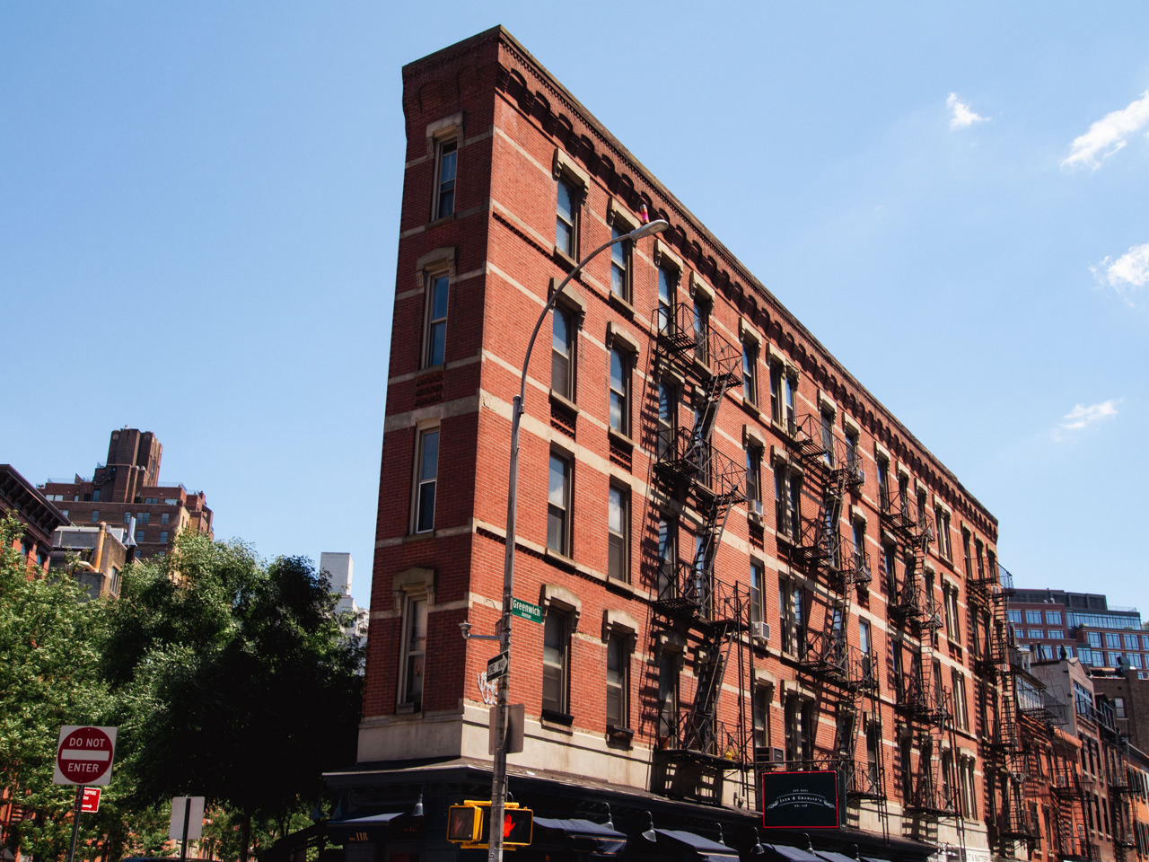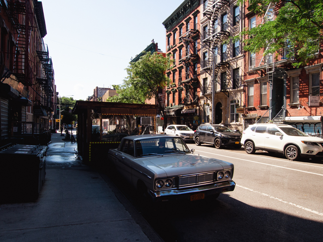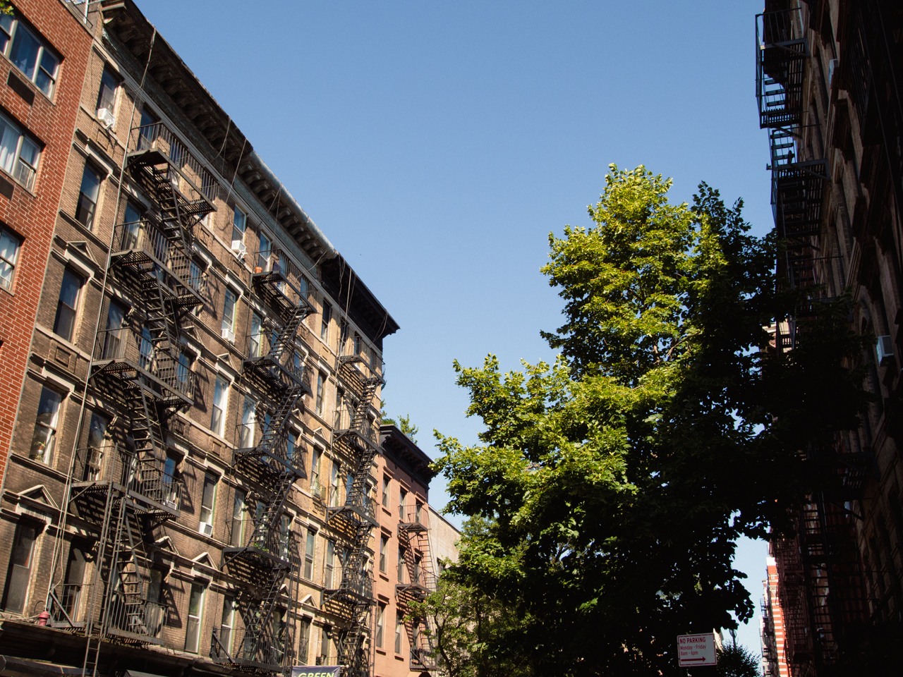 Après un brunch dans un petit restaurant qu’un ami nous a recommandé, le MUD dans East Village, on se promène dans le quartier qui est constitué de ces immeubles avec les escaliers à l’extérieur.