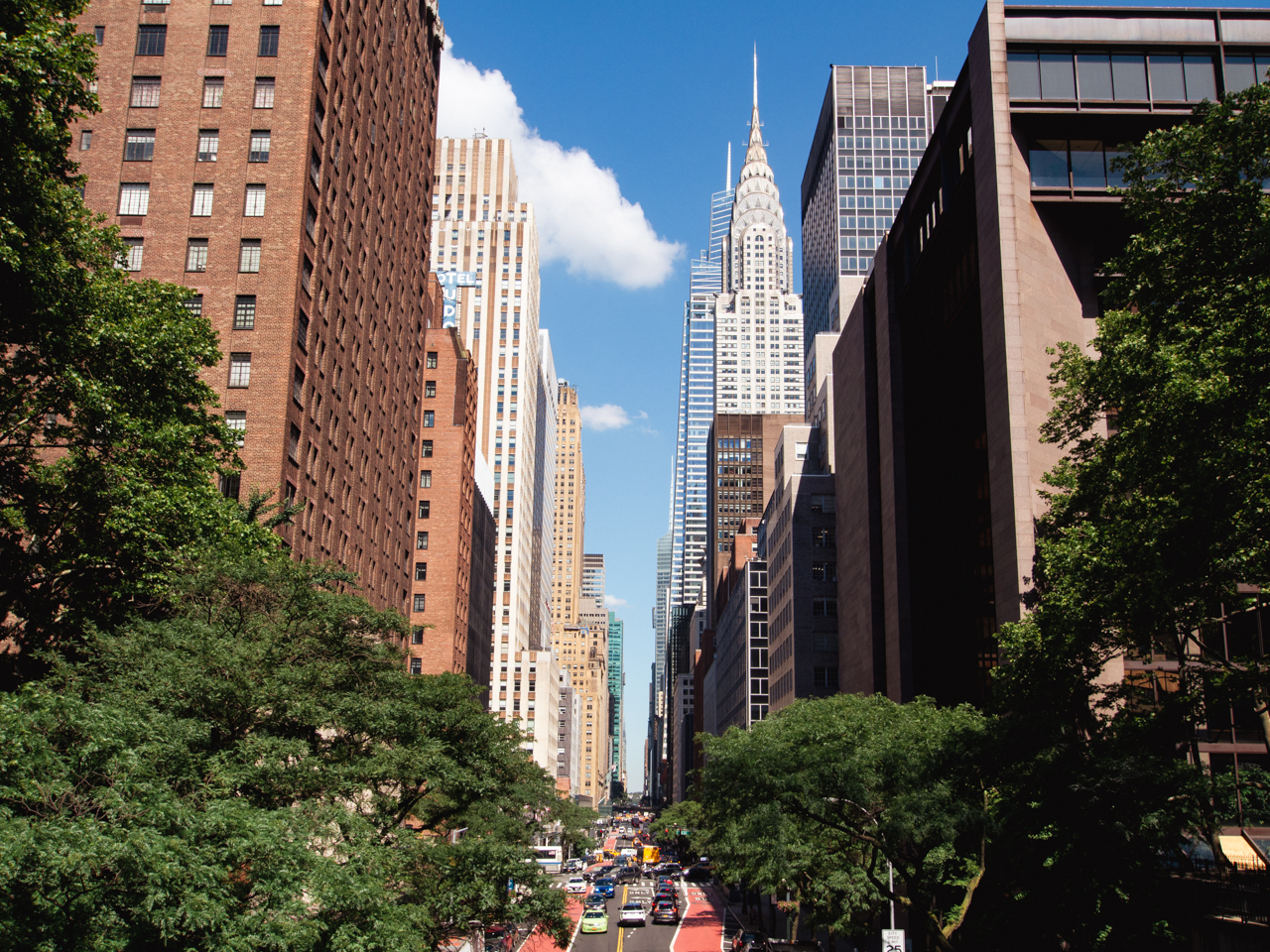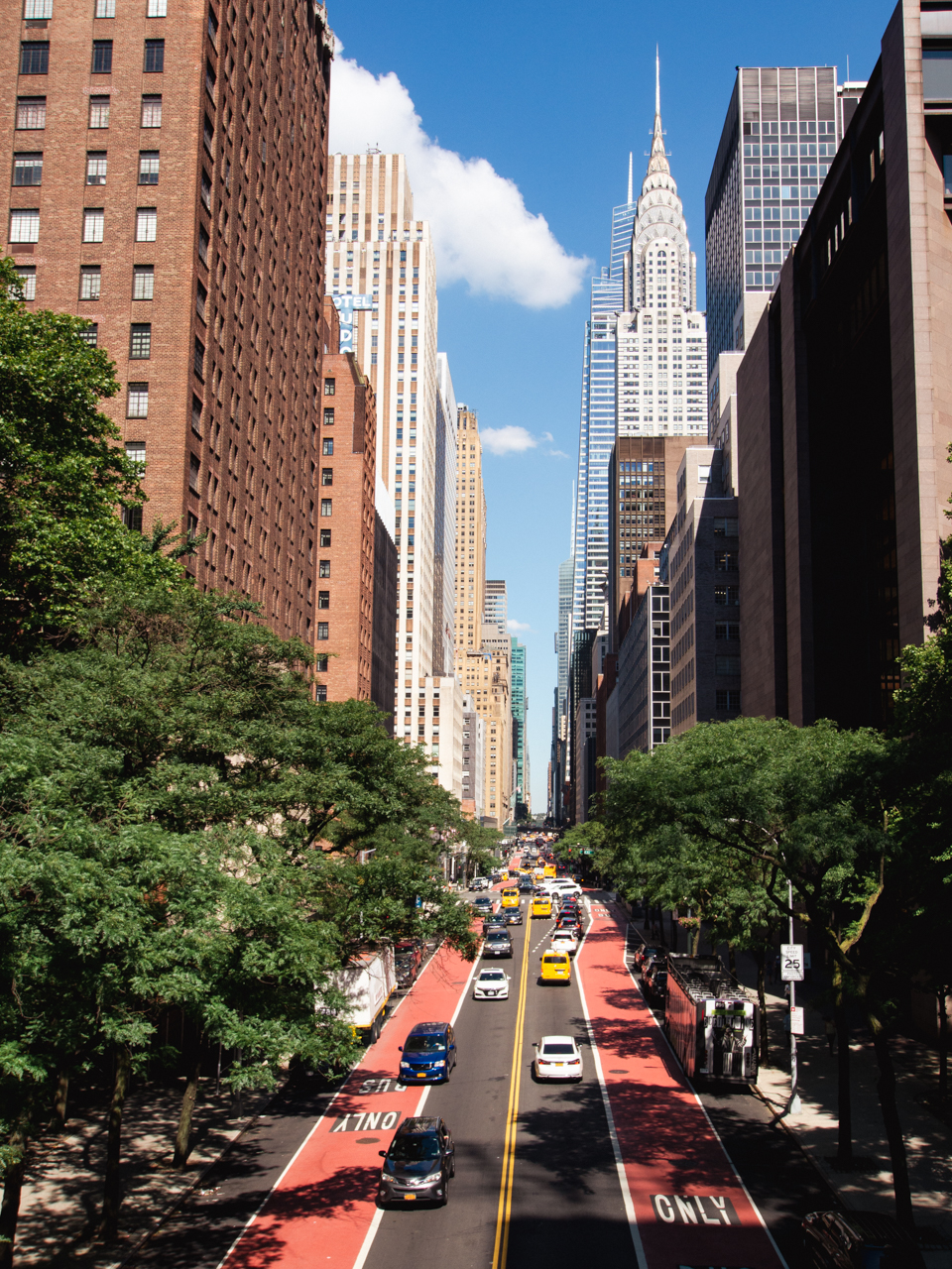 On monte sur le Tudor City Bridge pour avoir une vue plein Ouest sur Midtown. C’est en fait de ce pont que l’on a une des plus belles vues lors du Manhattanhenge au solstice d’été, malheureusement quelques jours seulement avant notre passage en ville, où l’on peut voir le soleil se coucher au milieu de ce canyon urbain fait de béton qu’est New York.