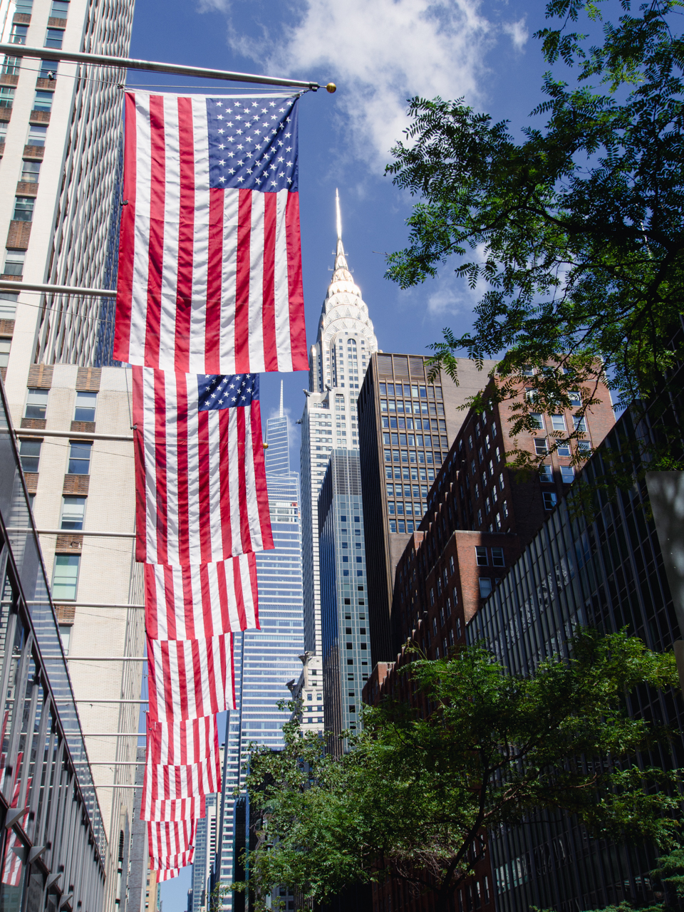 Il y a une profusion de drapeaux américains dans les rues devant les devantures des immeubles, on est à quelques jours du July 4th, est ce que c’est la raison pour laquelle ils ont commencé à installer les décorations ou est ce ainsi toute l’année, en tout cas on ressent un peu partout ce patriotisme américain bien ancré par ici.