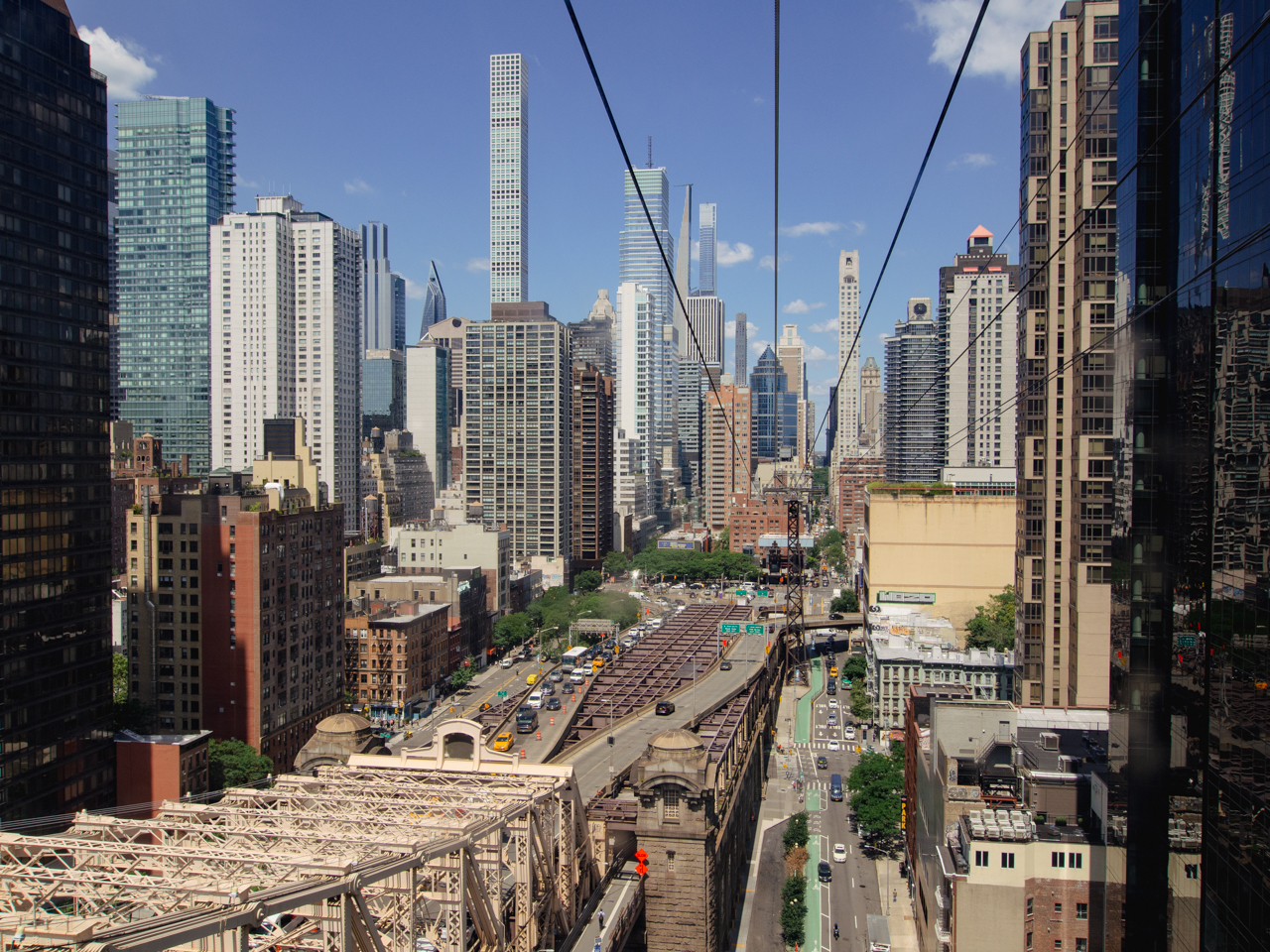 Un téléphérique urbain a été installé pour relier Manhattan à Roosevelt Island. Le ticket est inclus dans la Metrocard et cela permet de s’envoyer en l’air au-dessus des immeubles et de l’East River à côté du pont de Queenboro avec classe.