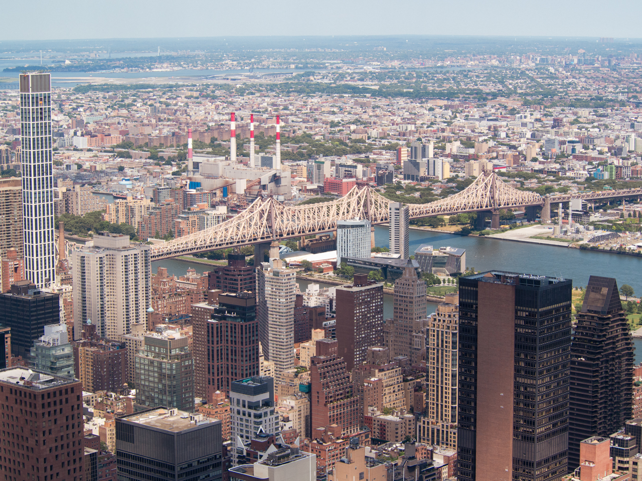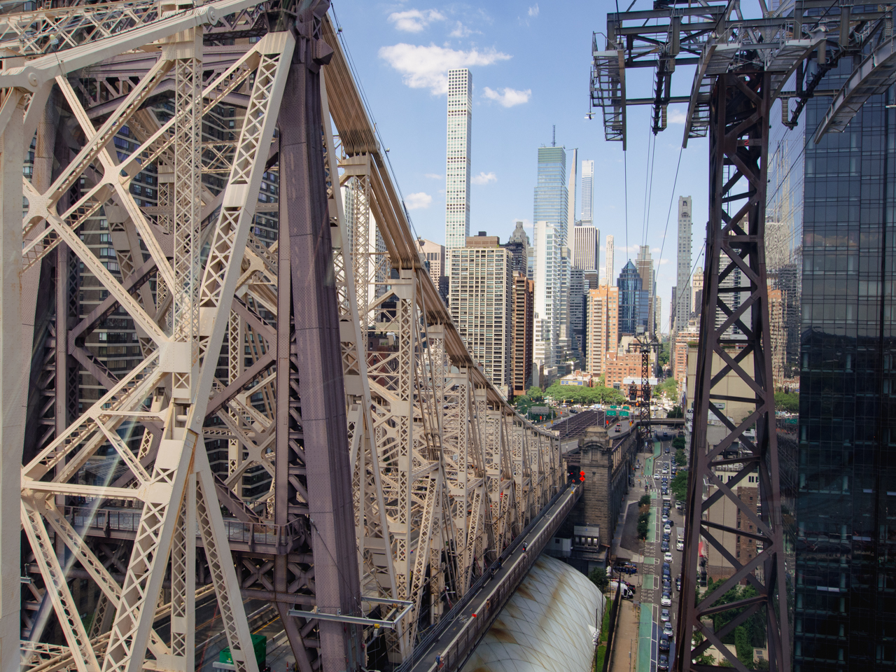 On a une vue avantageuse sur le pont de Queensboro où l’on était ce midi en téléphérique.