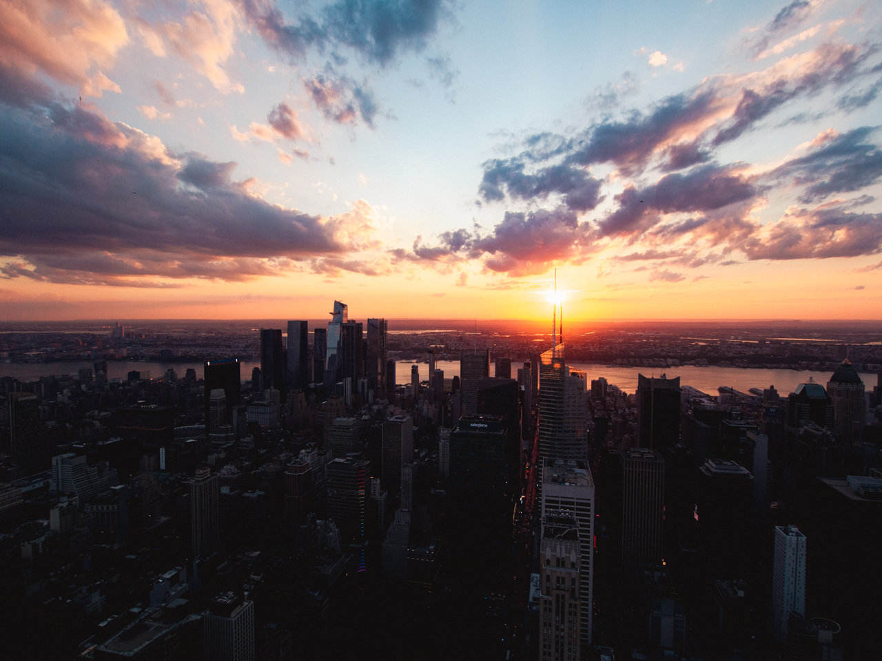 On se dit tant qu’à être là, on va attendre en se désaltérant jusqu’au coucher de soleil quelle belle idée on a eu. Ce soir là, on avons droit à un spectacle magnifique, le soleil se couchant doucement avec une lumière magnifique sur les buildings de Husdon Yard, la ville prend des teintes chaudes avant de s’illuminer.