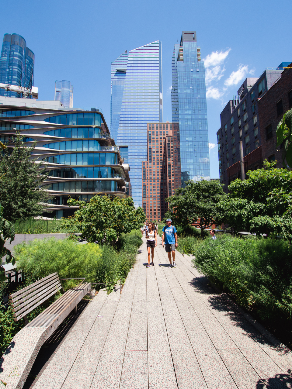 La High Line part de ce nouveau quartier et a été construite à la place d’une ligne de chemin de fer désaffectée, on a donc accès à des points de vue en hauteur sur la ville au milieu de plantes et d’oeuvres installées tout au long des deux kilomètres.