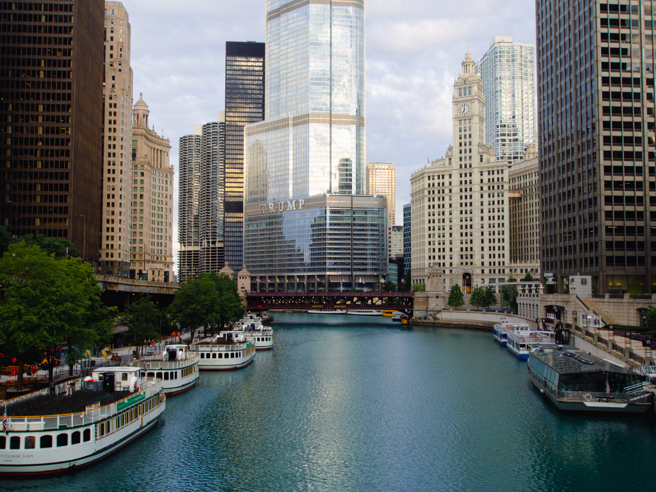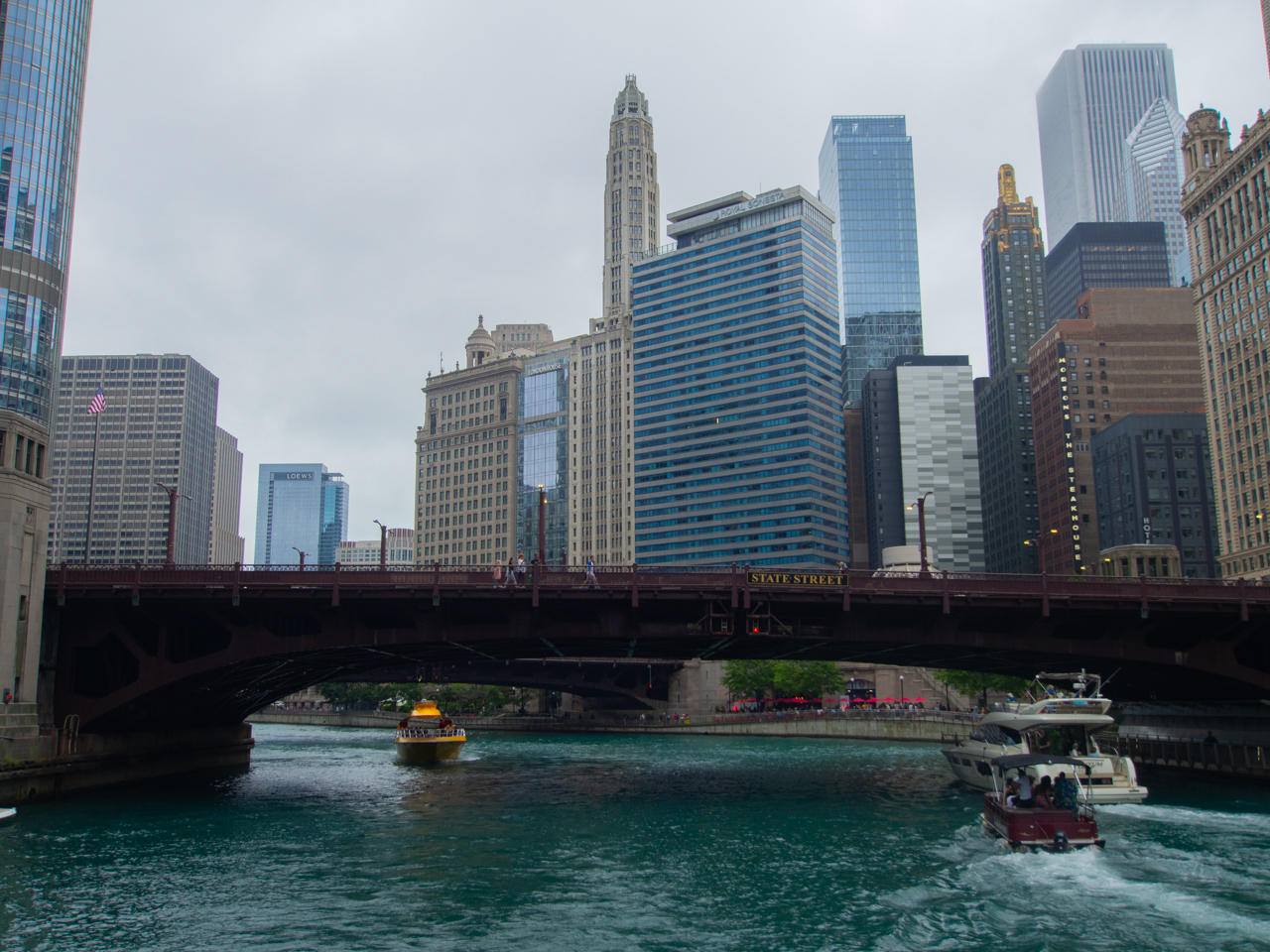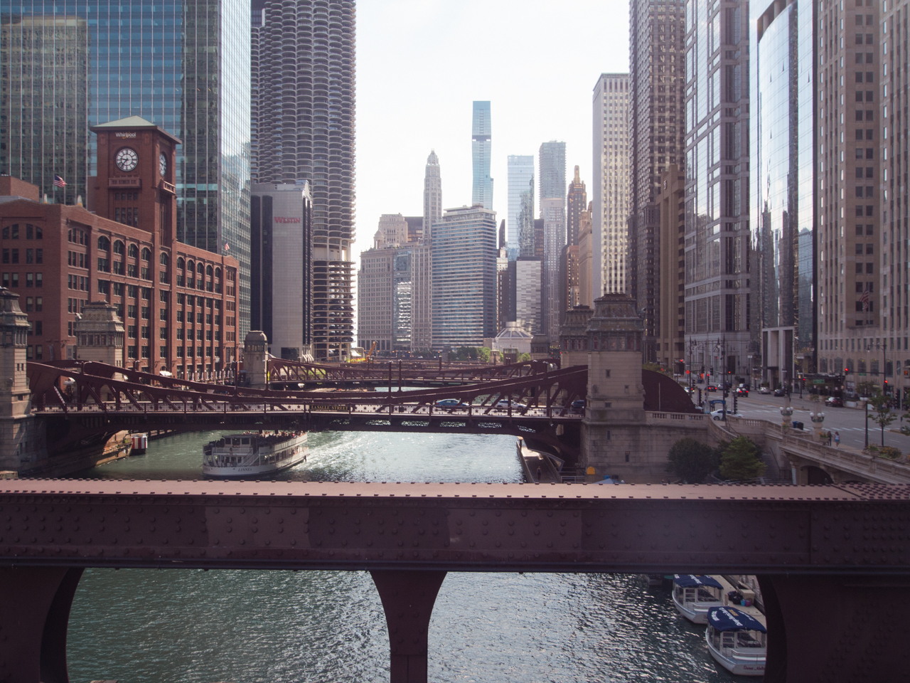 Depuis le pont DuSable, on a une vue sur le canyon de buildings autour de la rivière avec la Trump Tower qui a vraiment une position stratégique, centrale.