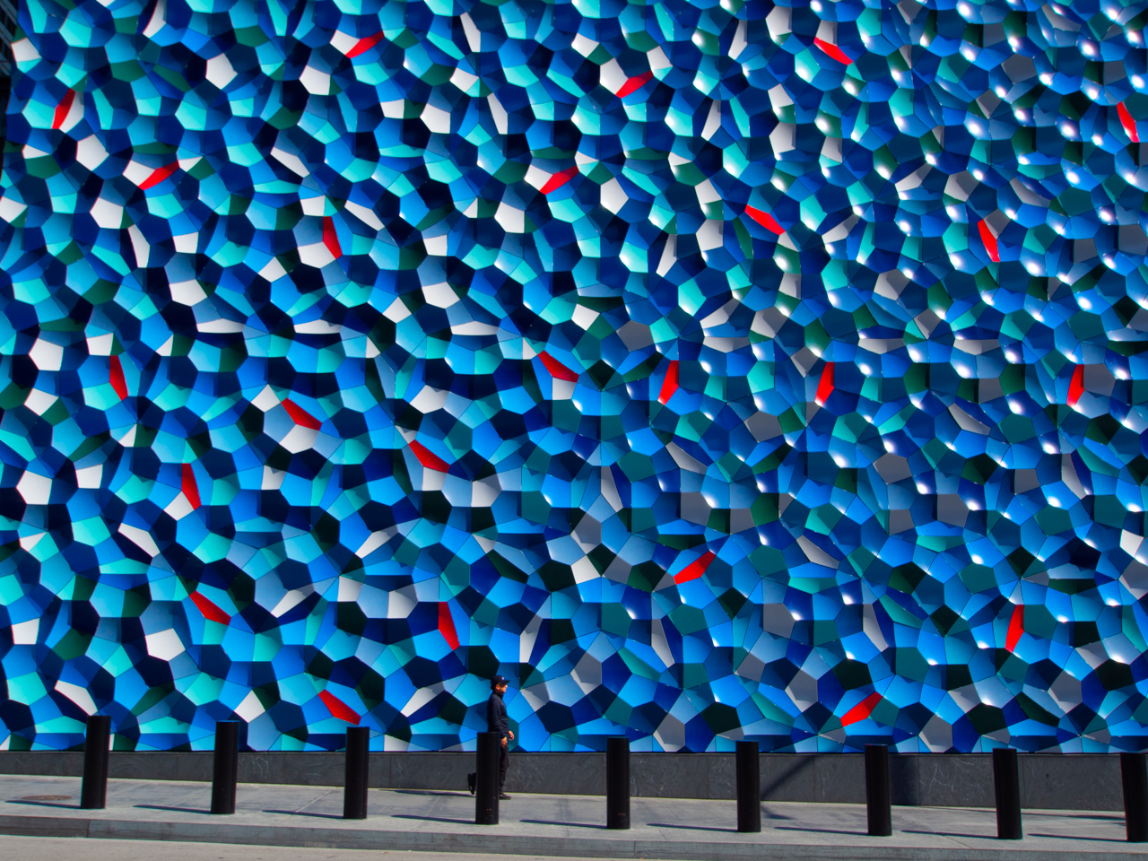 Une oeuvre d’art a été installée devant la tour, il s’agit en fait d’un magnifique mur coloré en relief du plus bel effet.