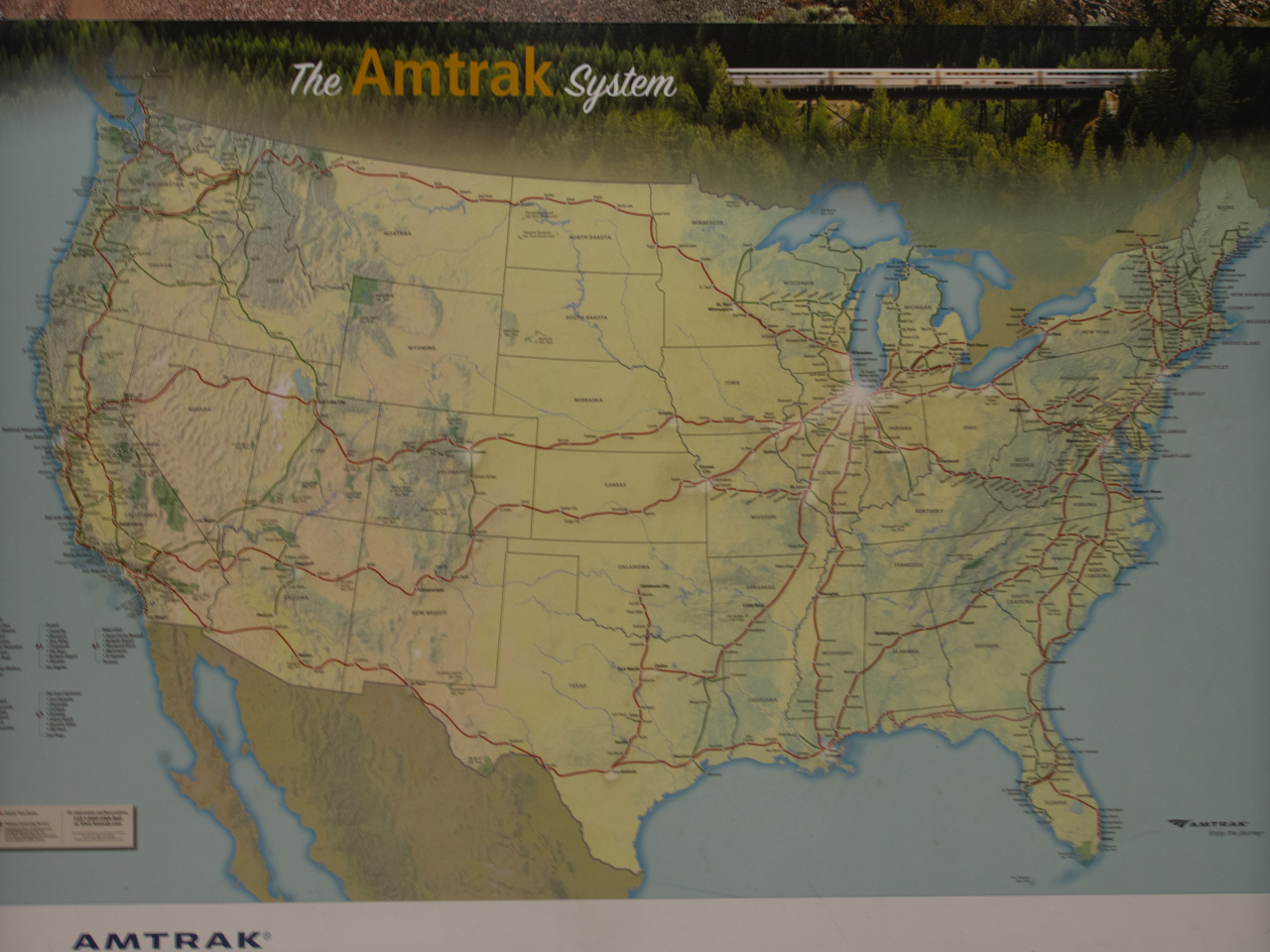 Chicago de part son positionnement au coeur du Midwest a été le hub principal des chemins de fer américain, depuis la mythique ligne de chemin de fer qui relie l’Est du pays à l’Ouest mais pas que, on peut se rendre compte à l’entrée de la gare que c’est bien Chicago qui est le centre du système ferroviaire, avec une conception en étoile à partir de la ville.