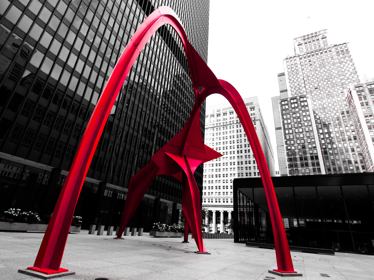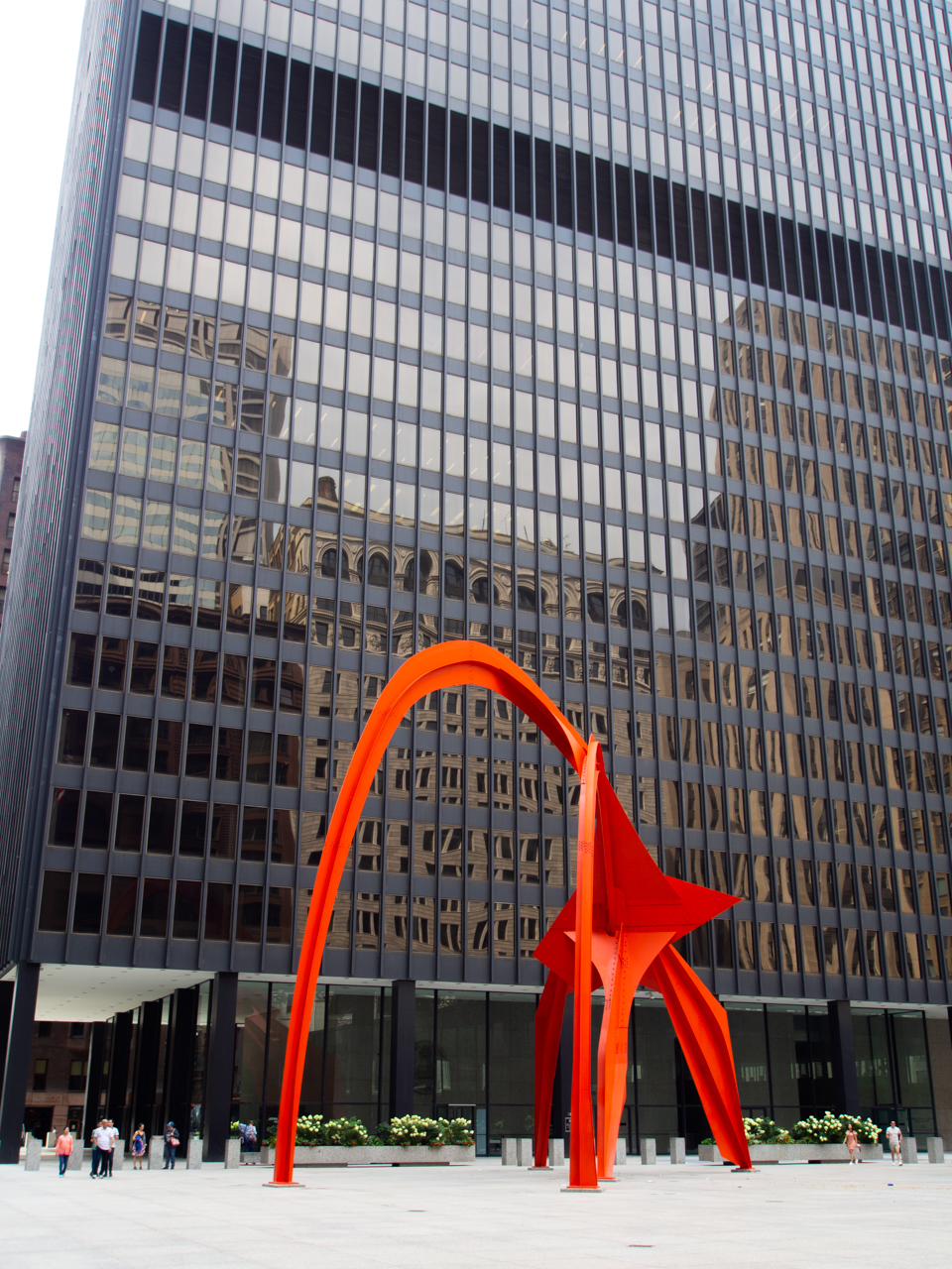 De retour dans le quartier d’affaires, je tombe sur cette belle oeuvre d’art, le Calder's Flamingo d’un rouge vif, il tranche avec la couleur sombre des bâtiments de la place.