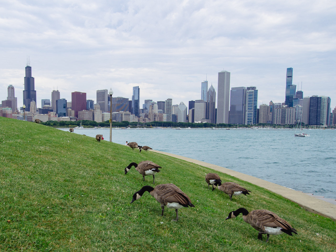 Il y a aussi beaucoup d’oies dans les parcs de Chicago, elles semblent être sauvages, en tout cas elles ne sont pas agressives et c’est amusant de les voir vivre dans une zone aussi urbanisée.