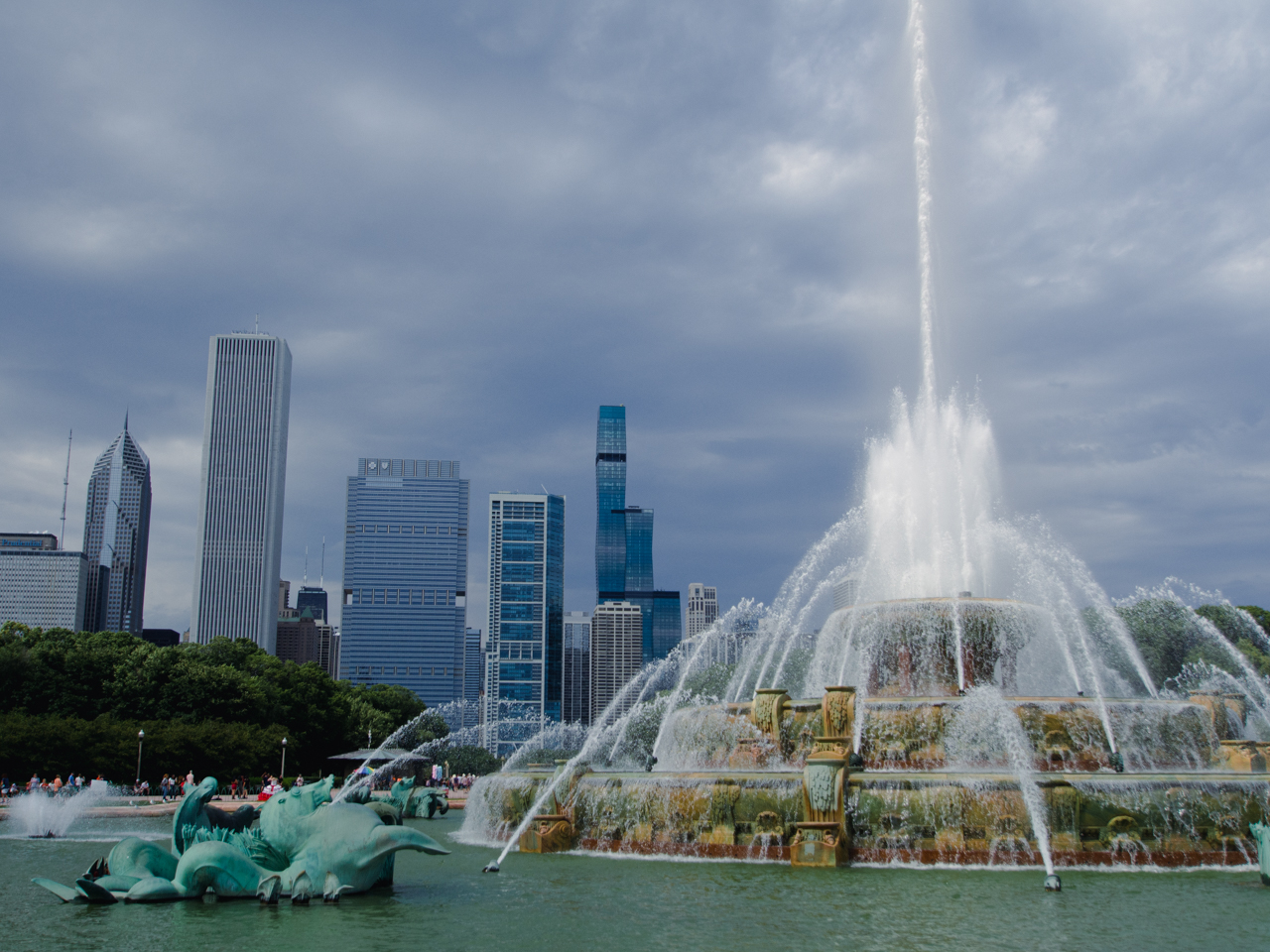 Comme le bord du lac est ouvert au public et constitue de fait une promenade agréable, je me retrouve à longer les berges jusqu’à Millenium park où je tombe sur la fontaine de Buckingham. Cette fontaine sur trois niveaux fait partie des plus grandes fontaines du monde. Son style est inspiré des fontaines Versaillaises. Elle fait partie des symboles de Chicago et souvent associée à la fin ou au début de la Route 66.