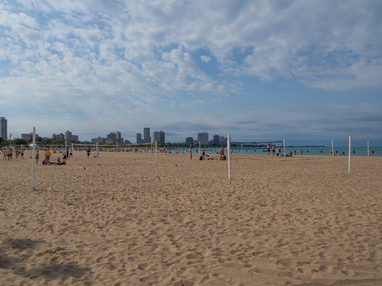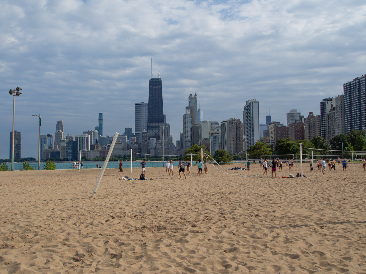 La plage de North Avenue Beach est très grande avec une succession de terrain de volley dans un cadre urbain original.