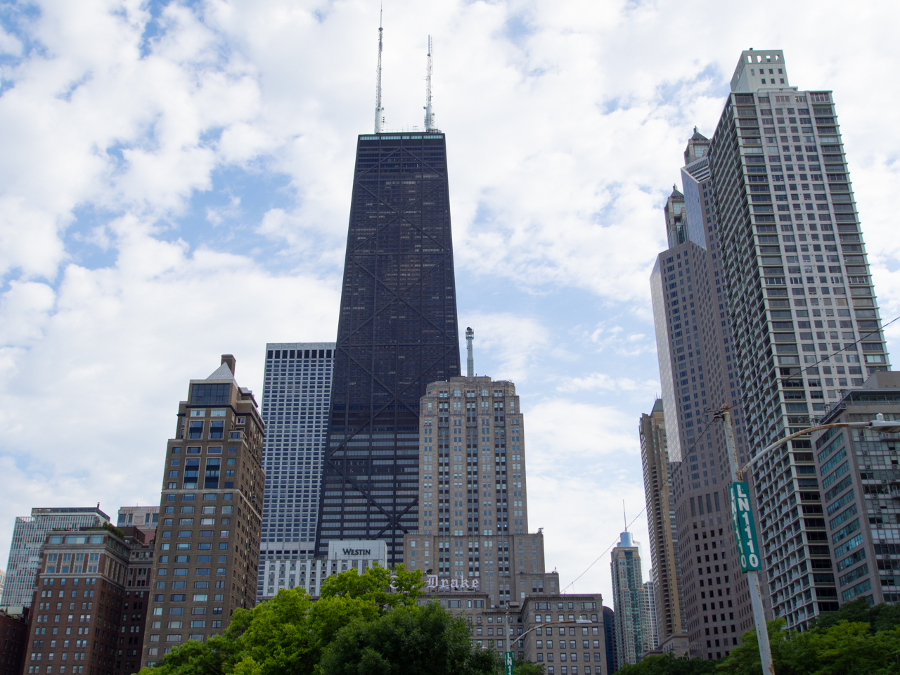 La Michigan Avenue est l’artère principale de la ville, et sur sa partie Nord qui commence depuis la plage jusqu’au pont de Dusable, elle prend le surnom de Magnifiaient Miles, un mile dédié au shopping depuis plus de cent ans. Sur cette avenue, on trouve le John Hancock Center, un des plus haut buildings de la ville, un des plus caractéristiques, avec ses antennes blanches qui culminent à 457m.