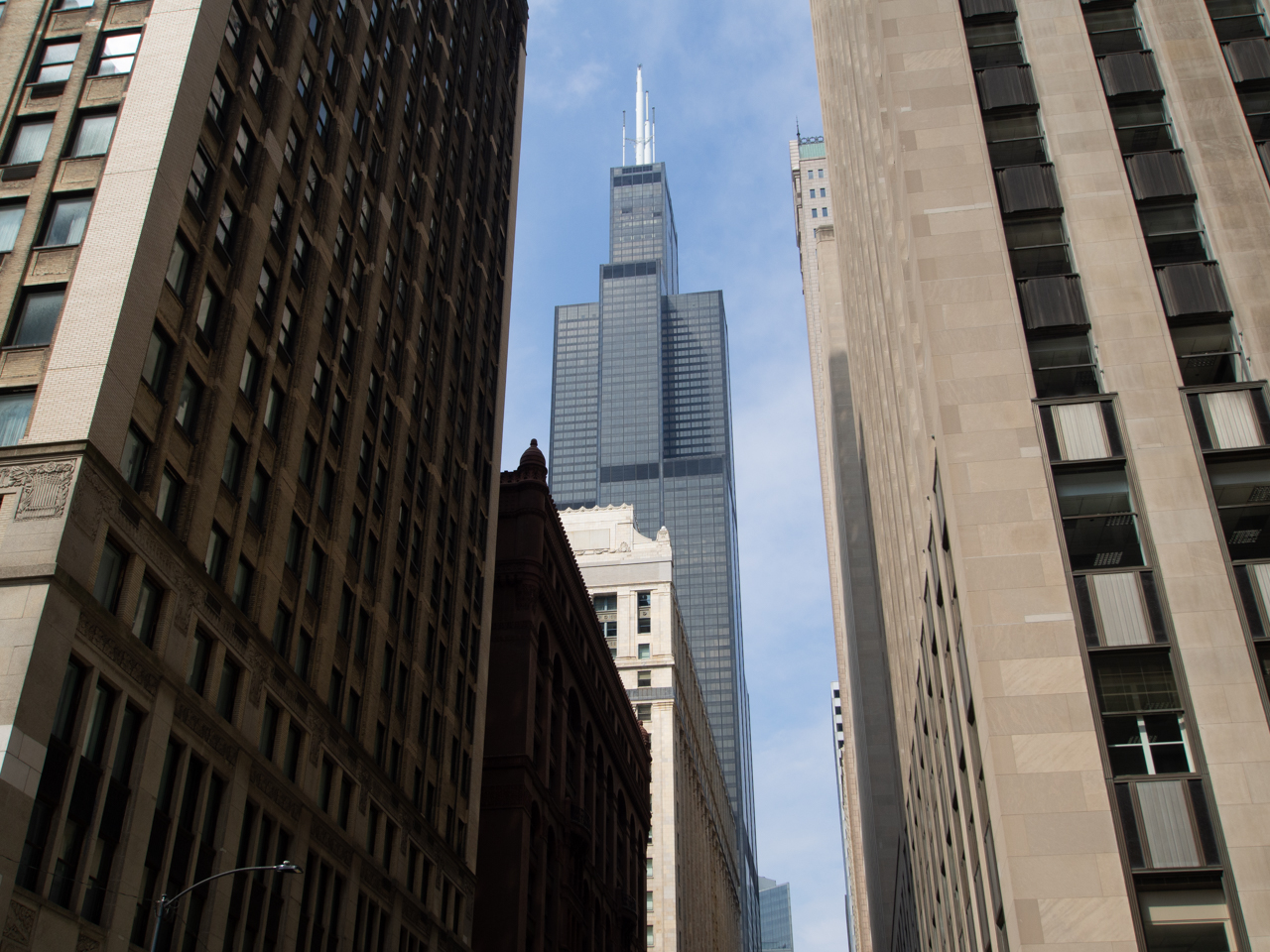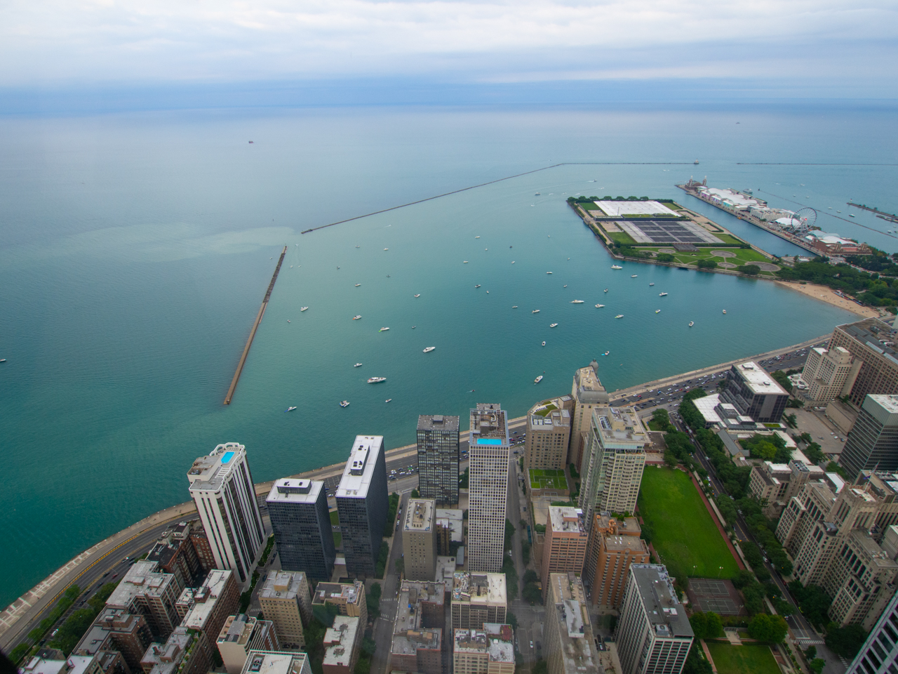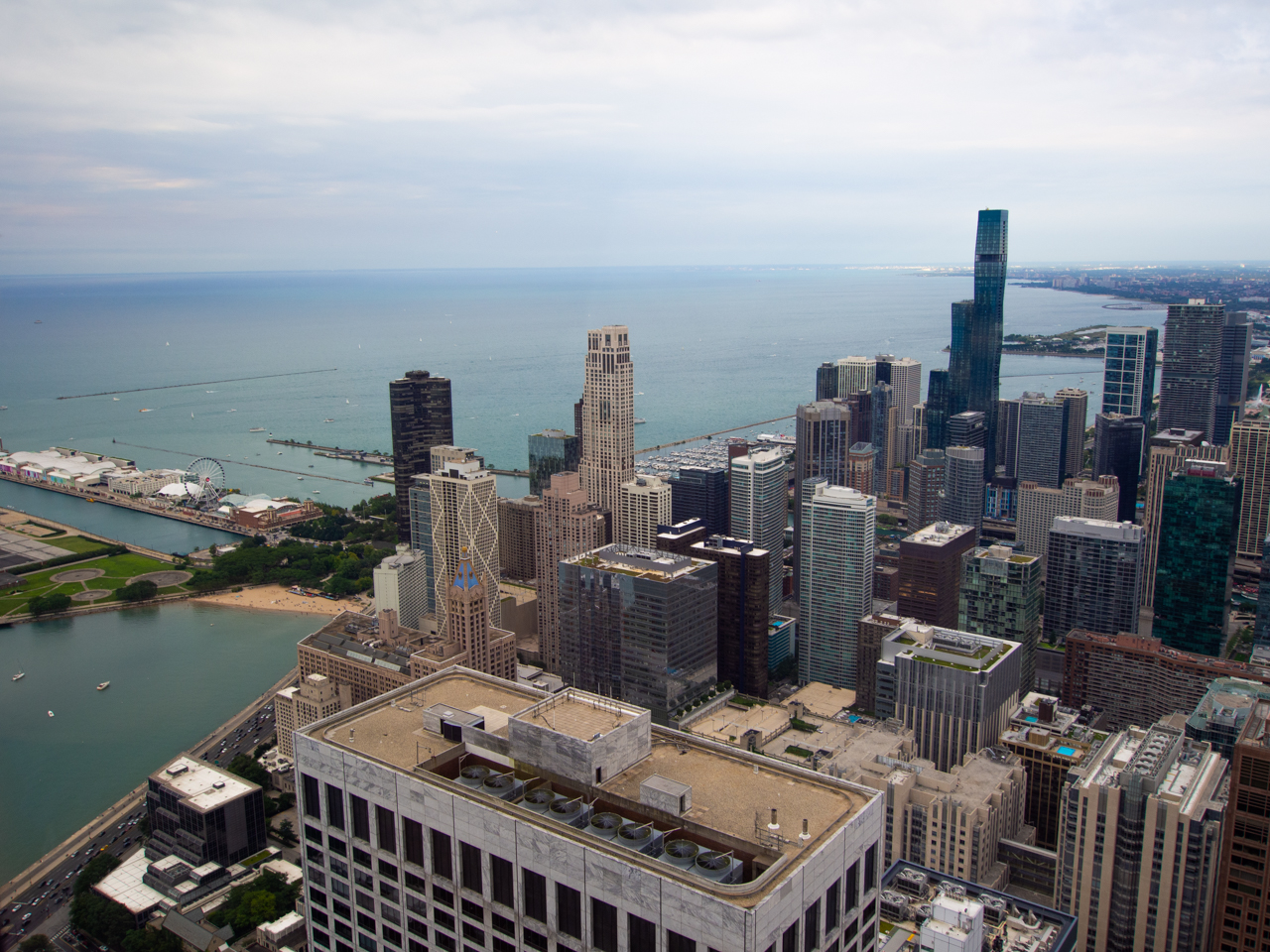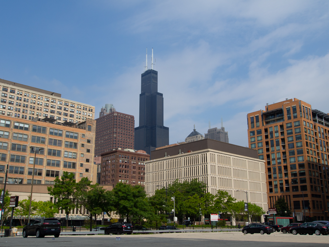 On a une belle vue sur la Willis Tower, un peu plus éloignée, qui permet d’en prendre toute la mesure par rapport au reste de la skyline de Chicago.