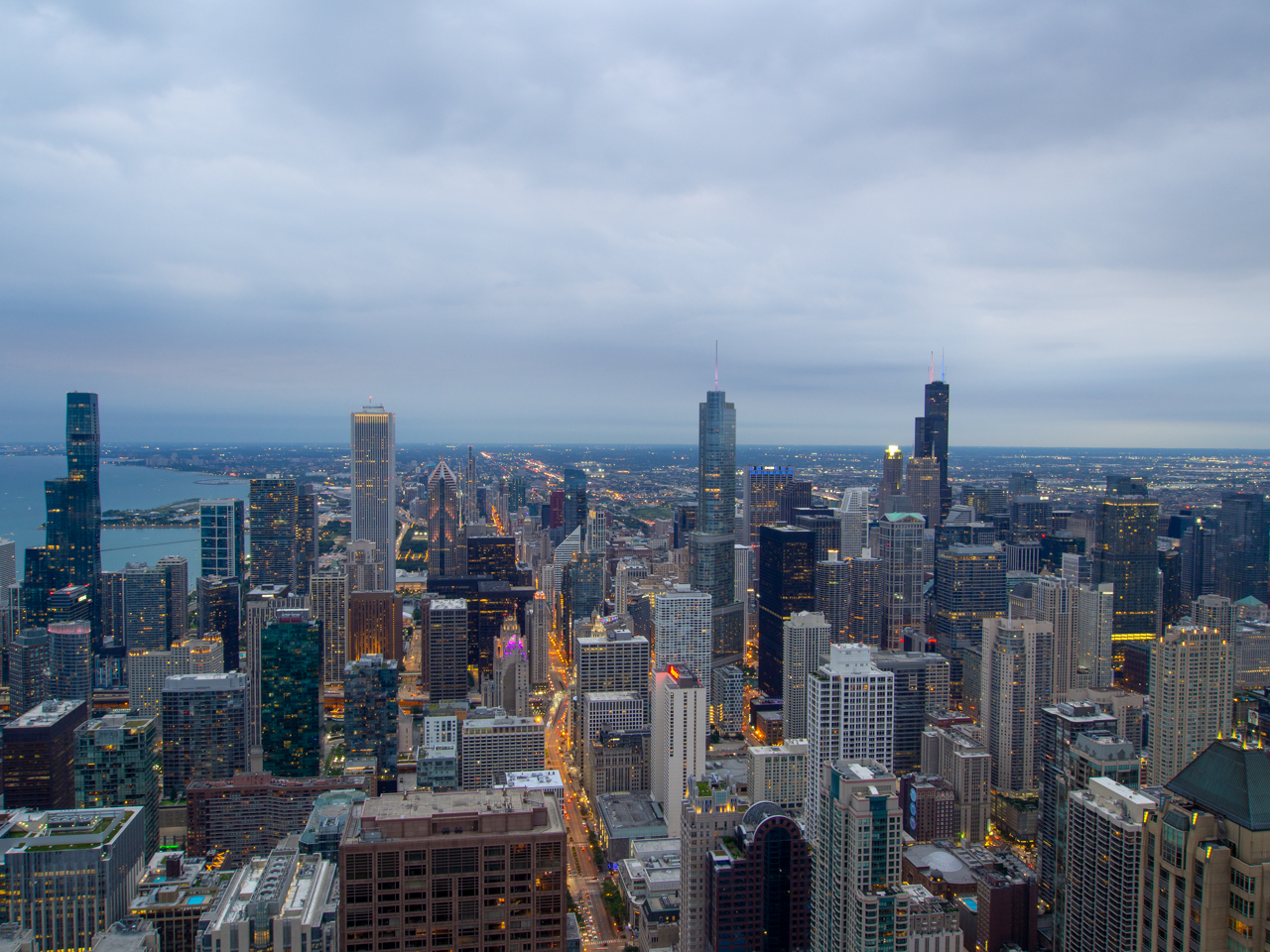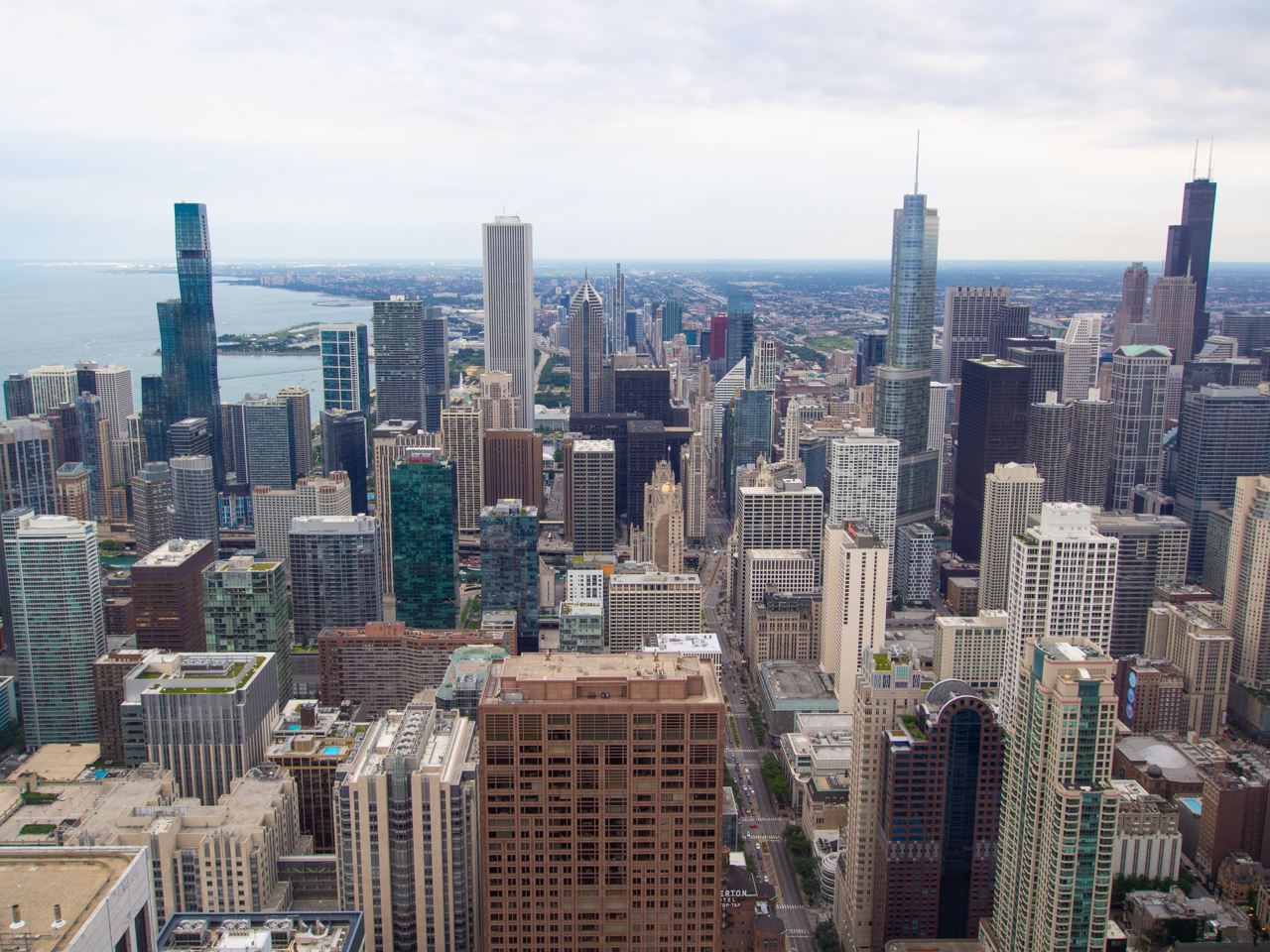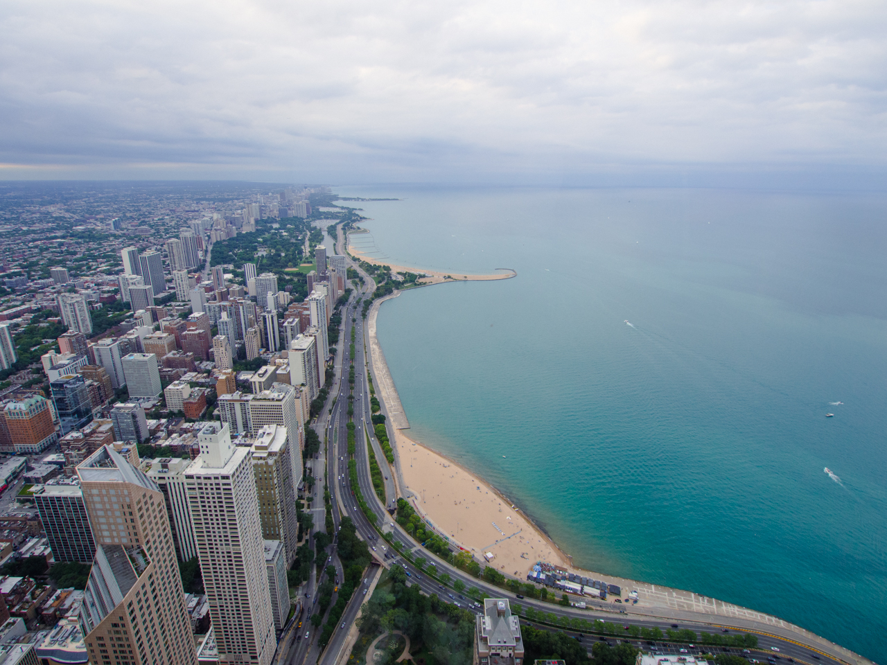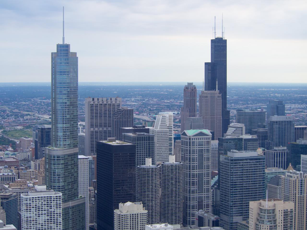 On a une belle vue sur la Willis Tower, un peu plus éloignée, qui permet d’en prendre toute la mesure par rapport au reste de la skyline de Chicago.