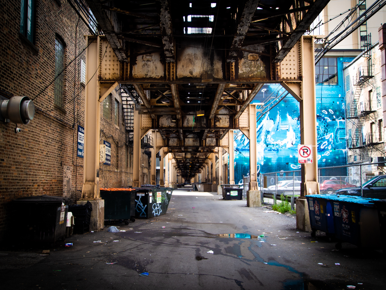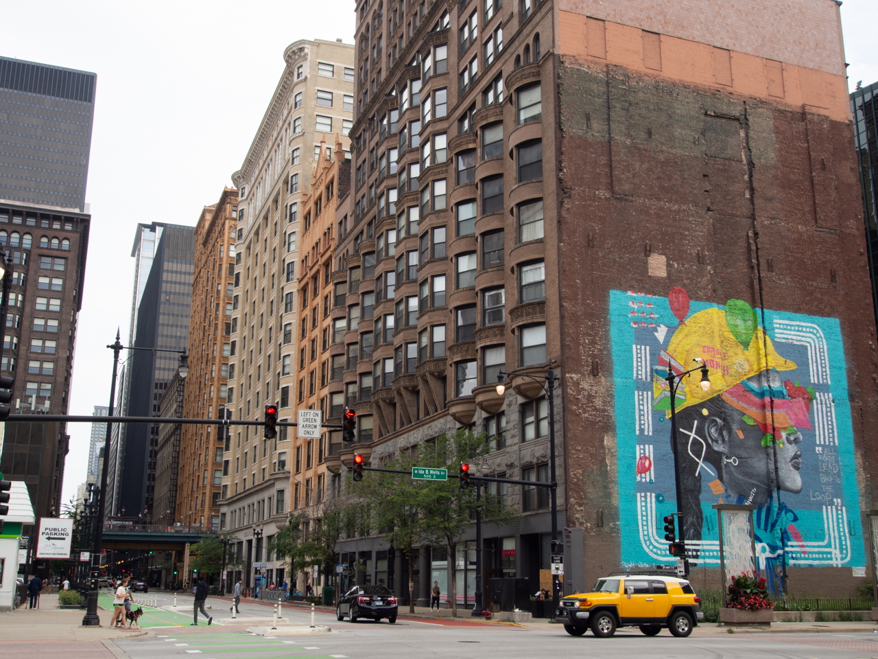 Dans le Sud du Loop, des fresques ont été dessinées sur les murs de bâtiments beaucoup moins reluisants, c’est clairement moins clinquant, mais cela a toujours un charme qui rappellent tellement de films américains. Cette rue par exemple servirait de décor parfait pour tourner une scène dramatique.
