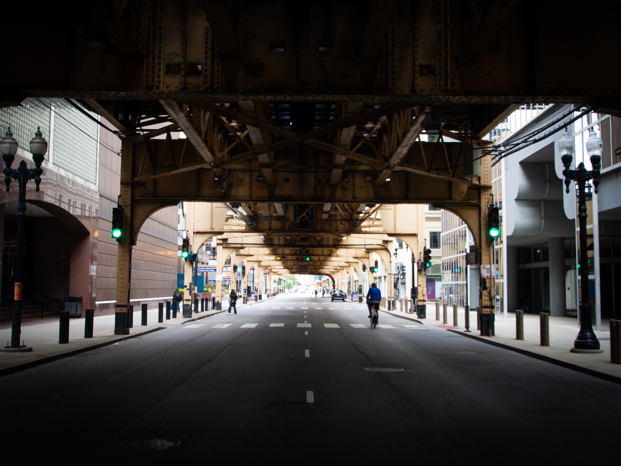 Les rues principales du Loop sont surmontées des rails de métro, des centaines de piliers métalliques sont installés entre les voies, il faut faire très attention, et je me demande comment font les conducteurs pour les éviter surtout la nuit car aucun réflecteur lumineux n’est installé dessus.