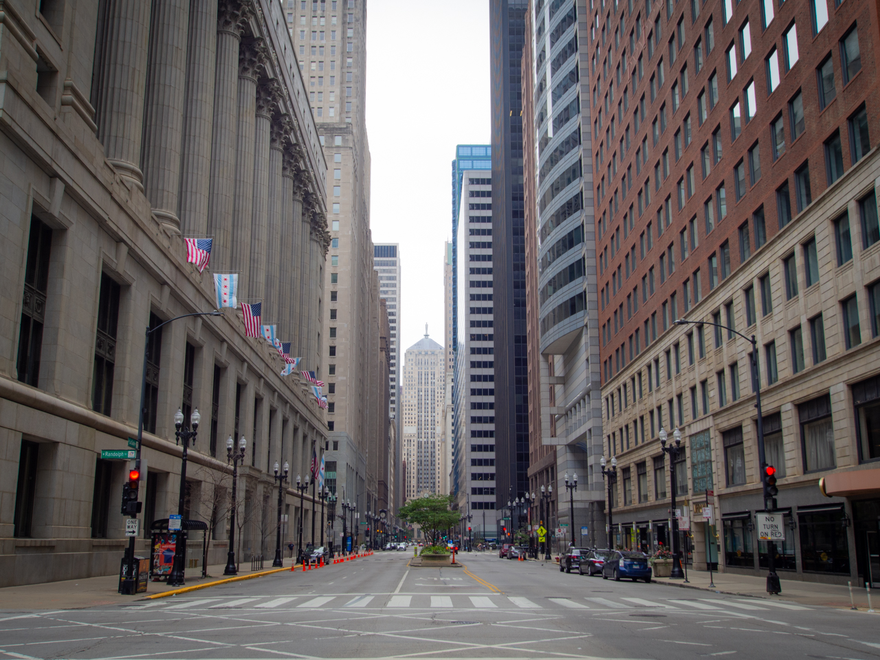 Le quartier autour de la Willis Tower est rempli de ces élégants bâtiments qui logent aujourd’hui des banques, on a en tout cas de belles perspectives sur les canyons urbains et le bâtiment de la bourse.