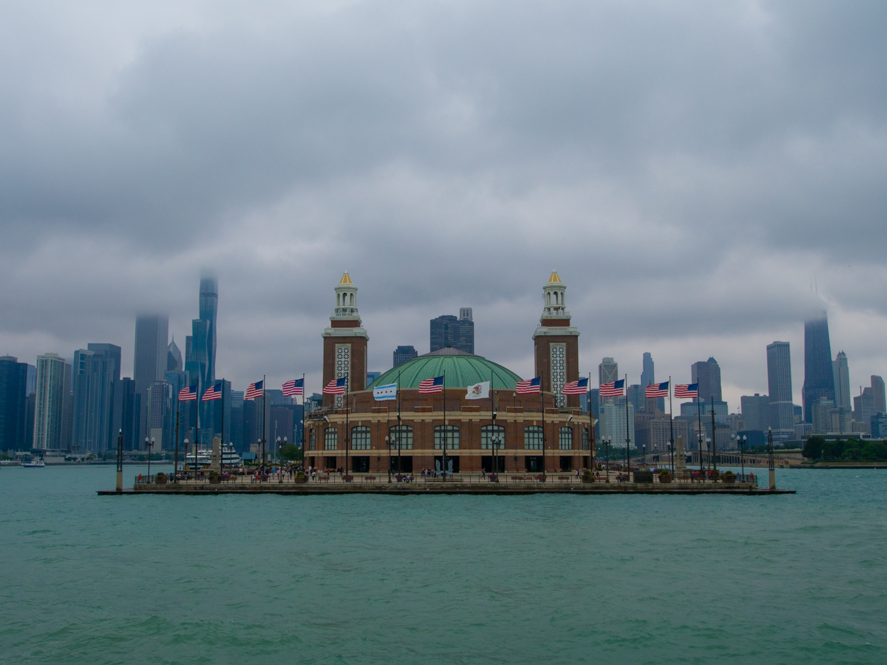 On passe devant le Navy Pier. Ce ponton a été utilisé pendant la deuxième guerre mondiale pour entrainer les pilotes à atterrir sur les porte avions, depuis il a été transformé en parc de loisir.