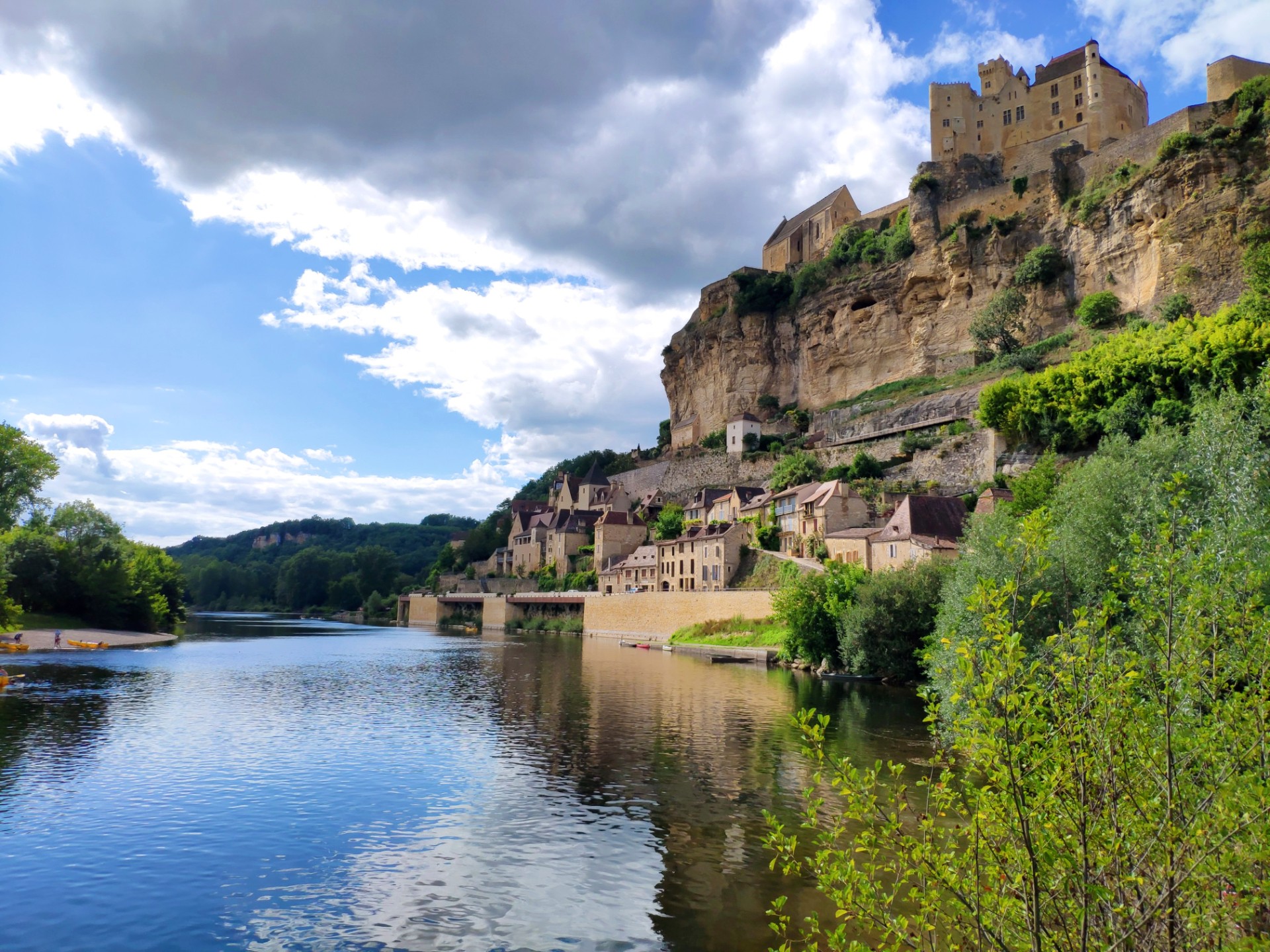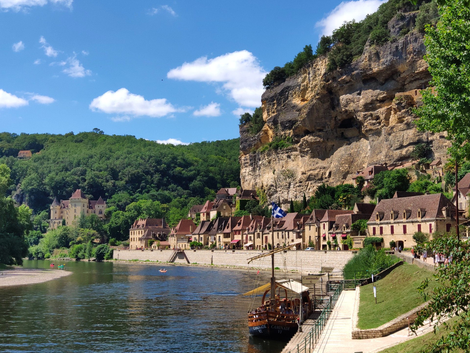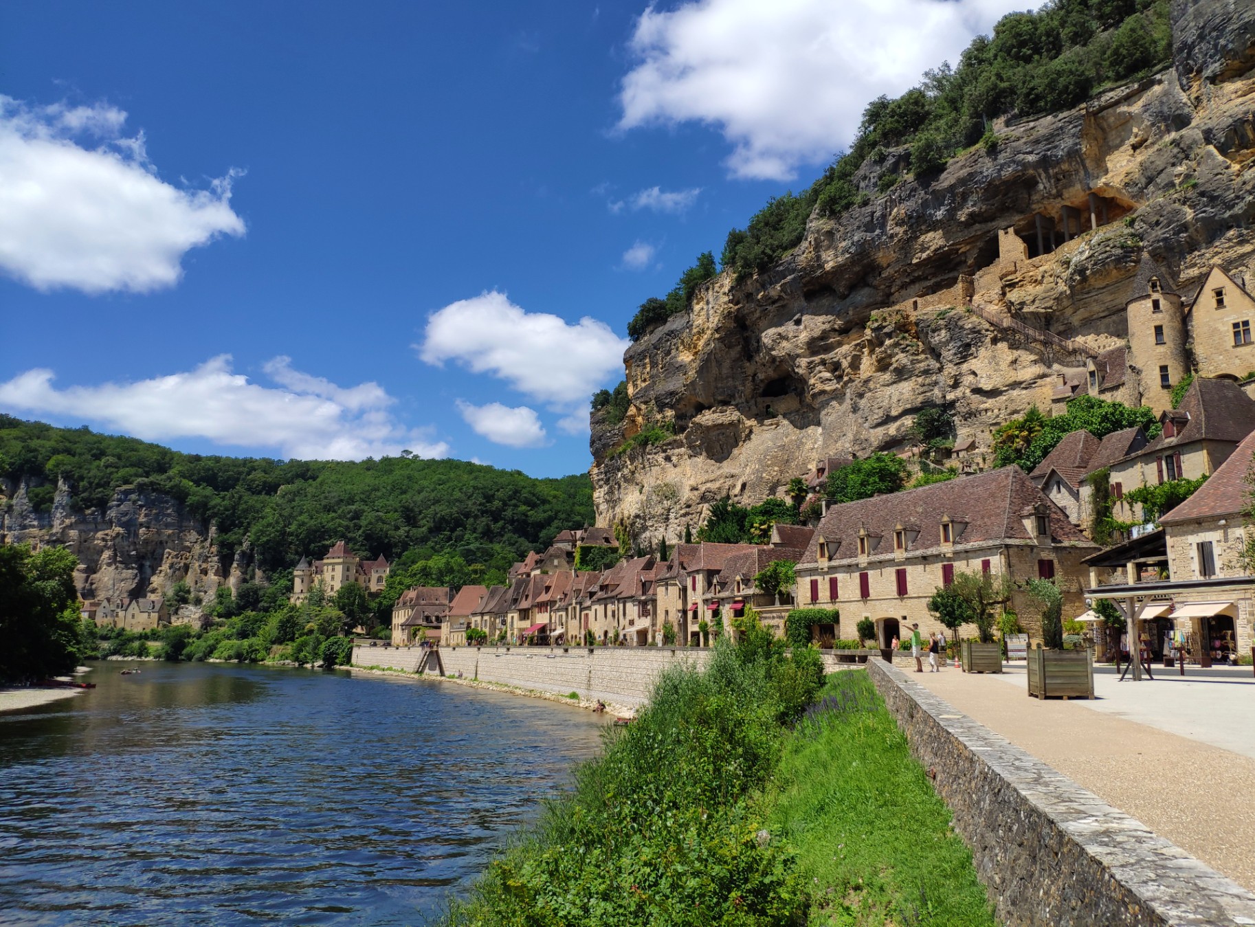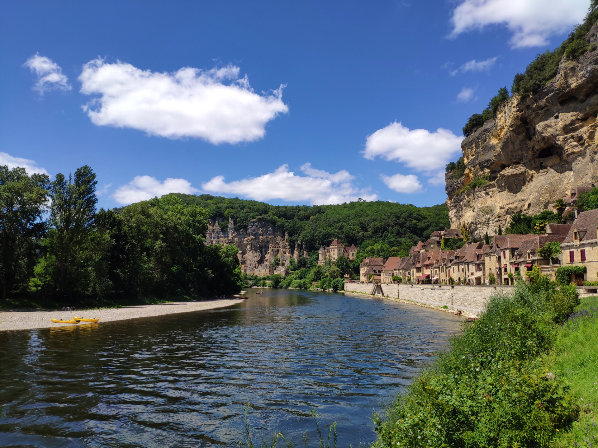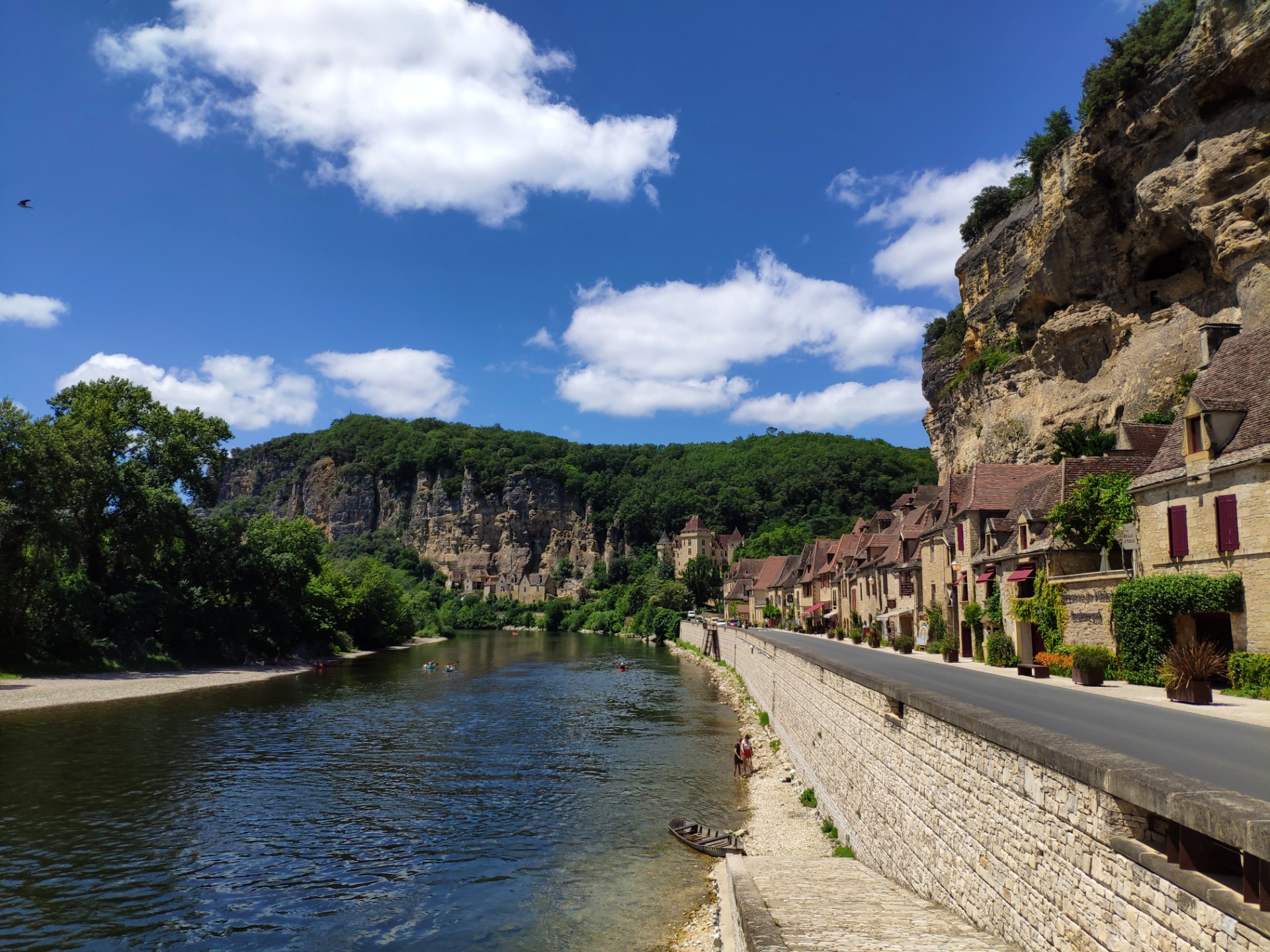 Sur les bords de la Dordogne, on trouve quatre villages classés parmi les plus beaux villages de France. Le plus connu d’entre eux est la Roque Gageac, un village construit tout en longueur qui semble coincé entre la rivière et la falaise. Pour moi c’est vraiment un coup de cœur dans la région, j’étais déjà venu en 2018 et c’est avec beaucoup de plaisir que je reviens ici. C'est une image de carte postale de la Dordogne qui se présente face à nous.