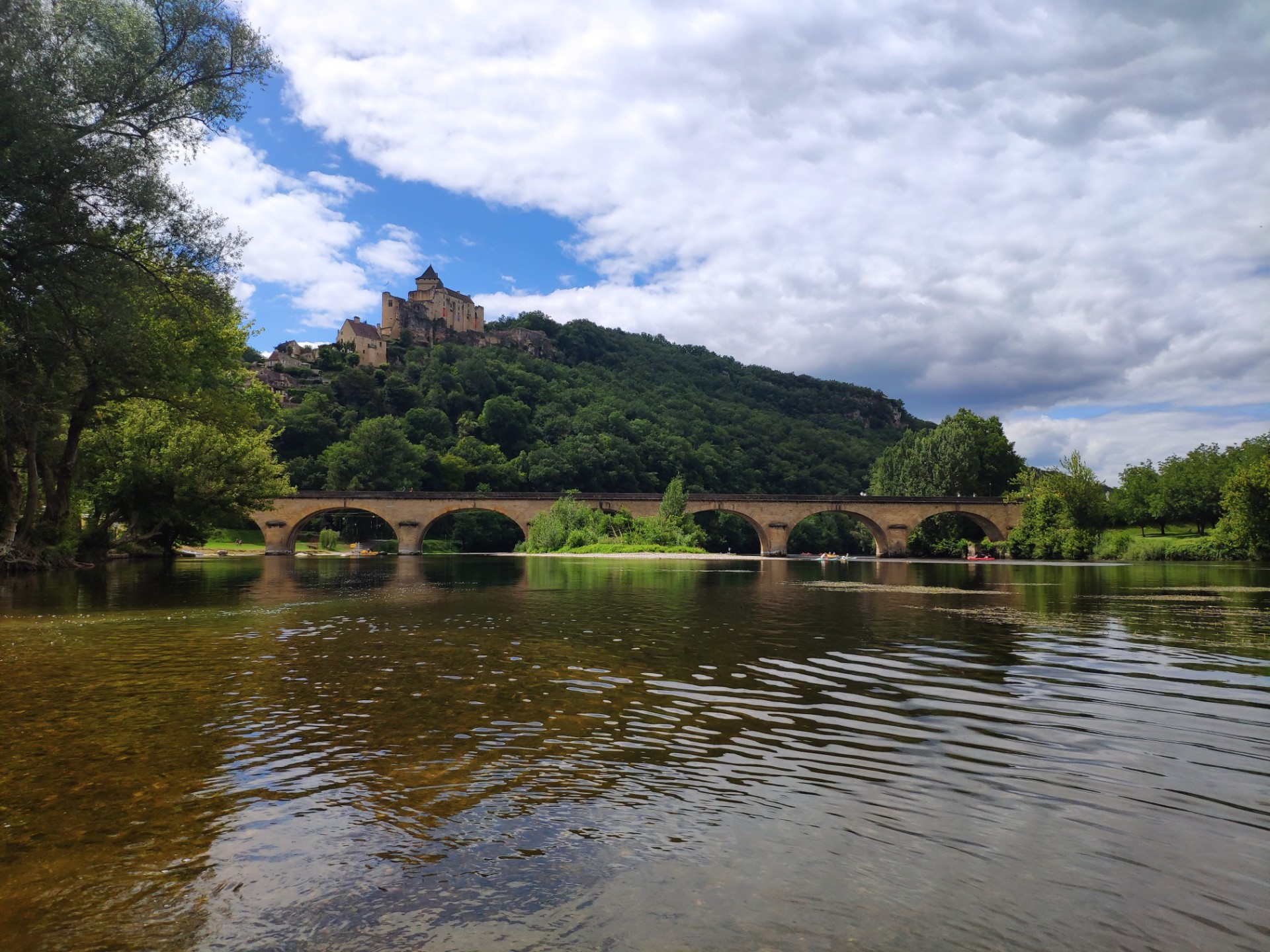 Après un bon repas à Sarlat dans un restaurant gastronomique étoilé, nous décidons de faire une pause au pied du village de Castelnaud, un bon compromis pour apprécier la vue sur ce village classé lui-aussi dont le château semble directement sorti d’un film.