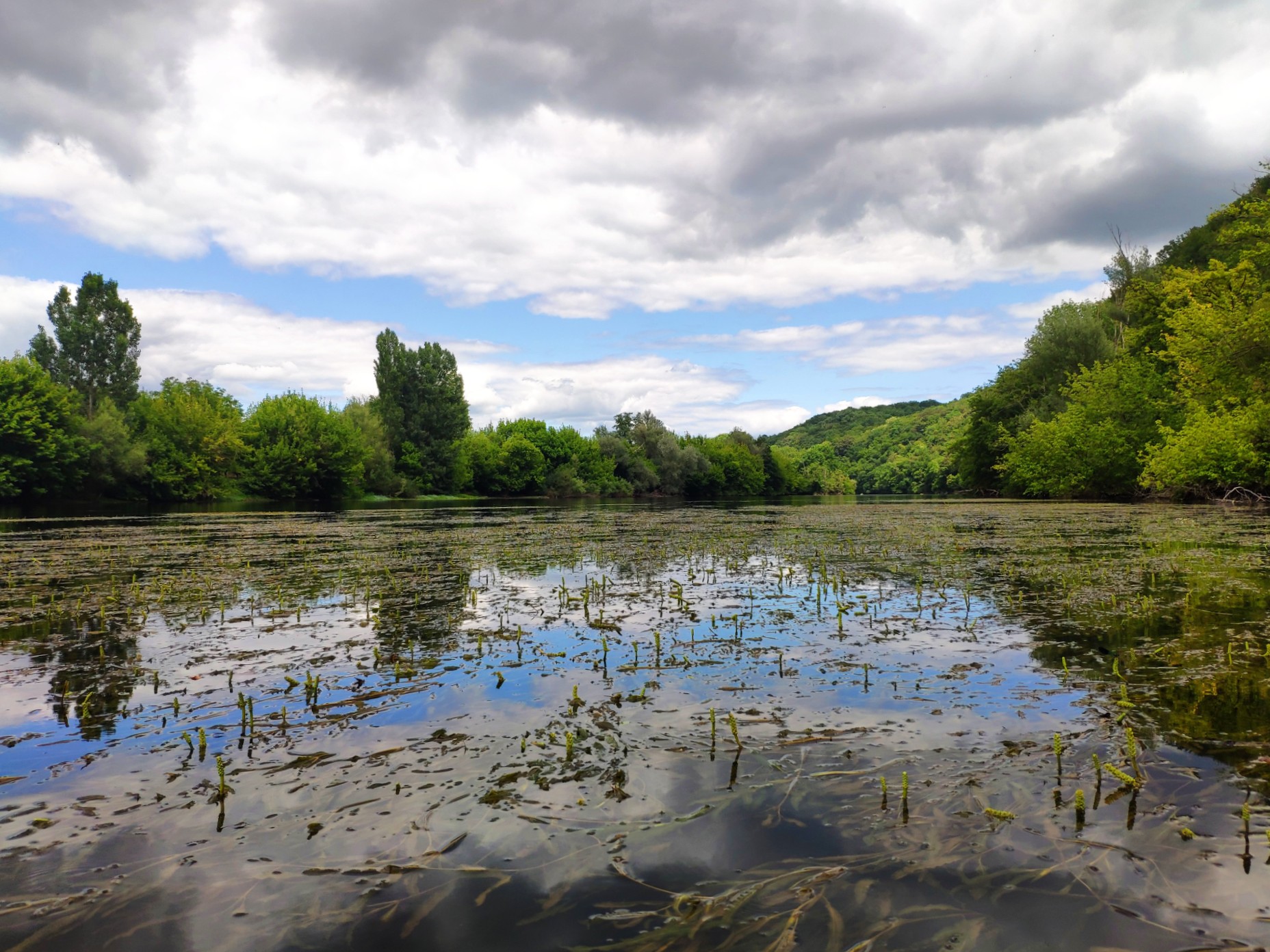 L'eau est assez fraiche, on voit passer de nombreux canoe qui descendent vers Beynac, la rivière garde quand même un aspect sauvage.