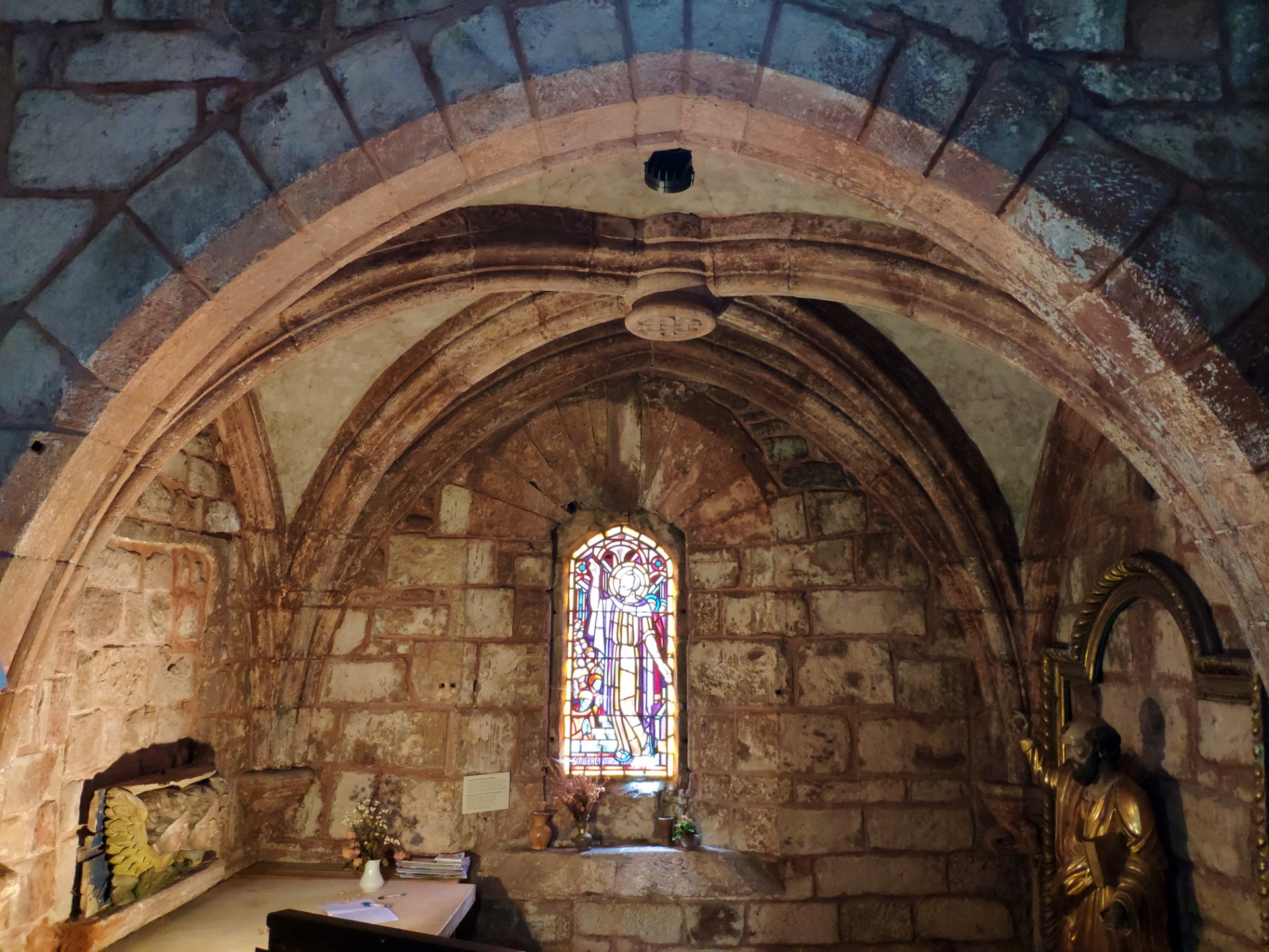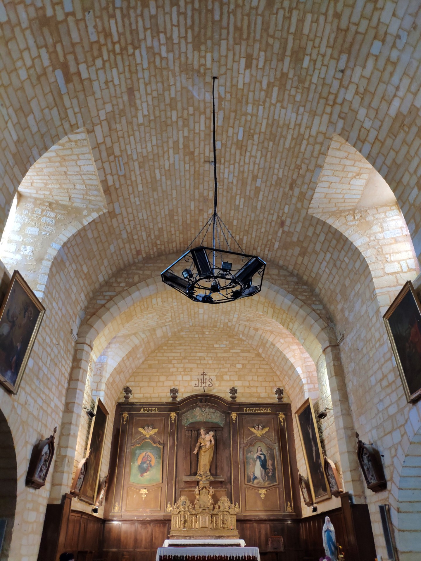 L'intérieur de l'église garde les mêmes couleurs que les pierres des édifices à l'extérieur, une jolie teinte blonde