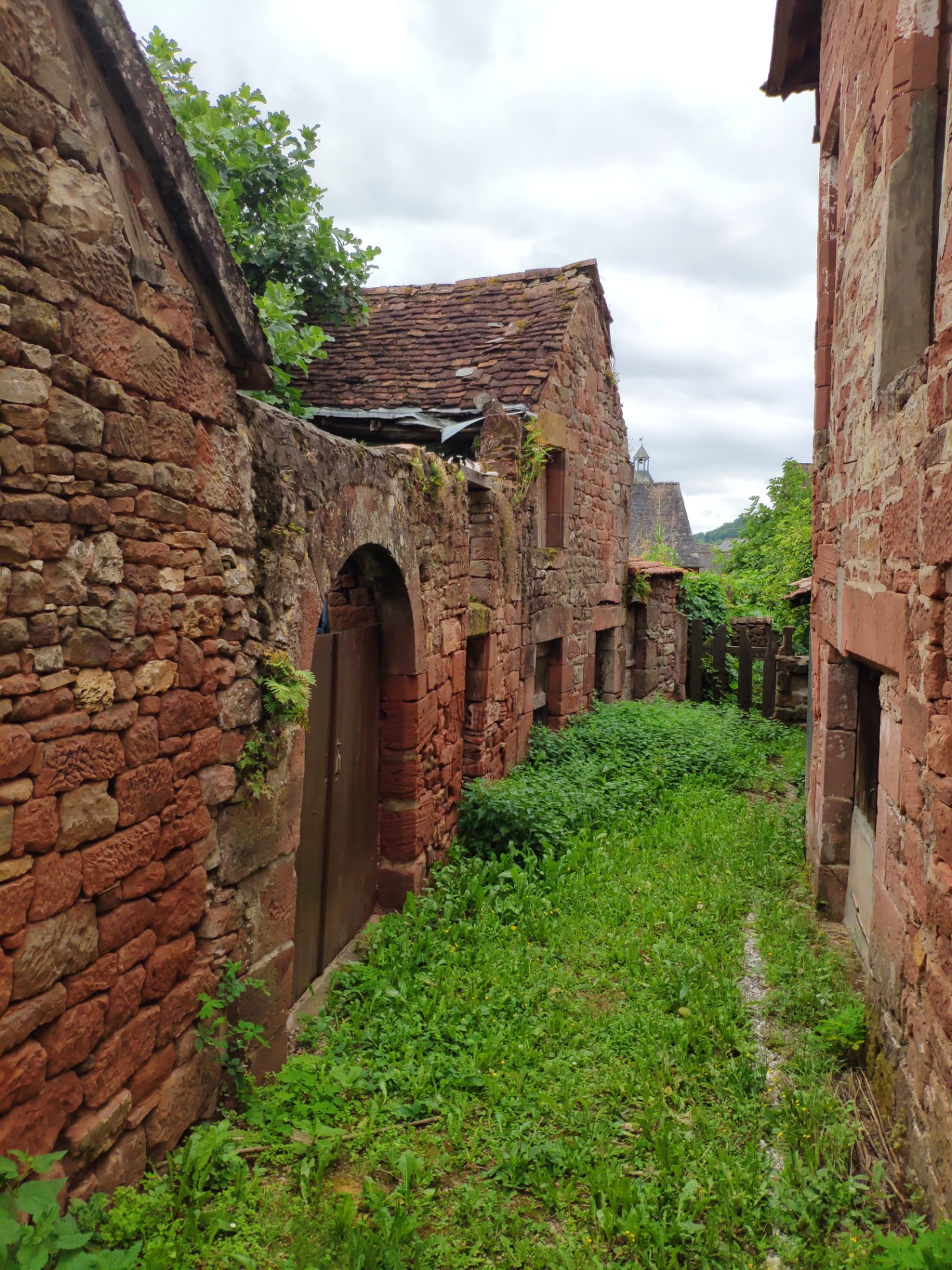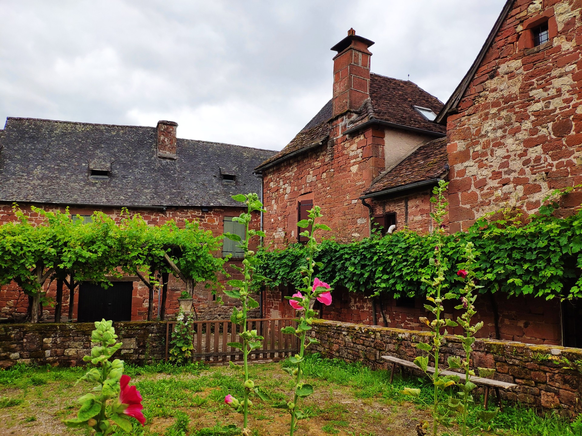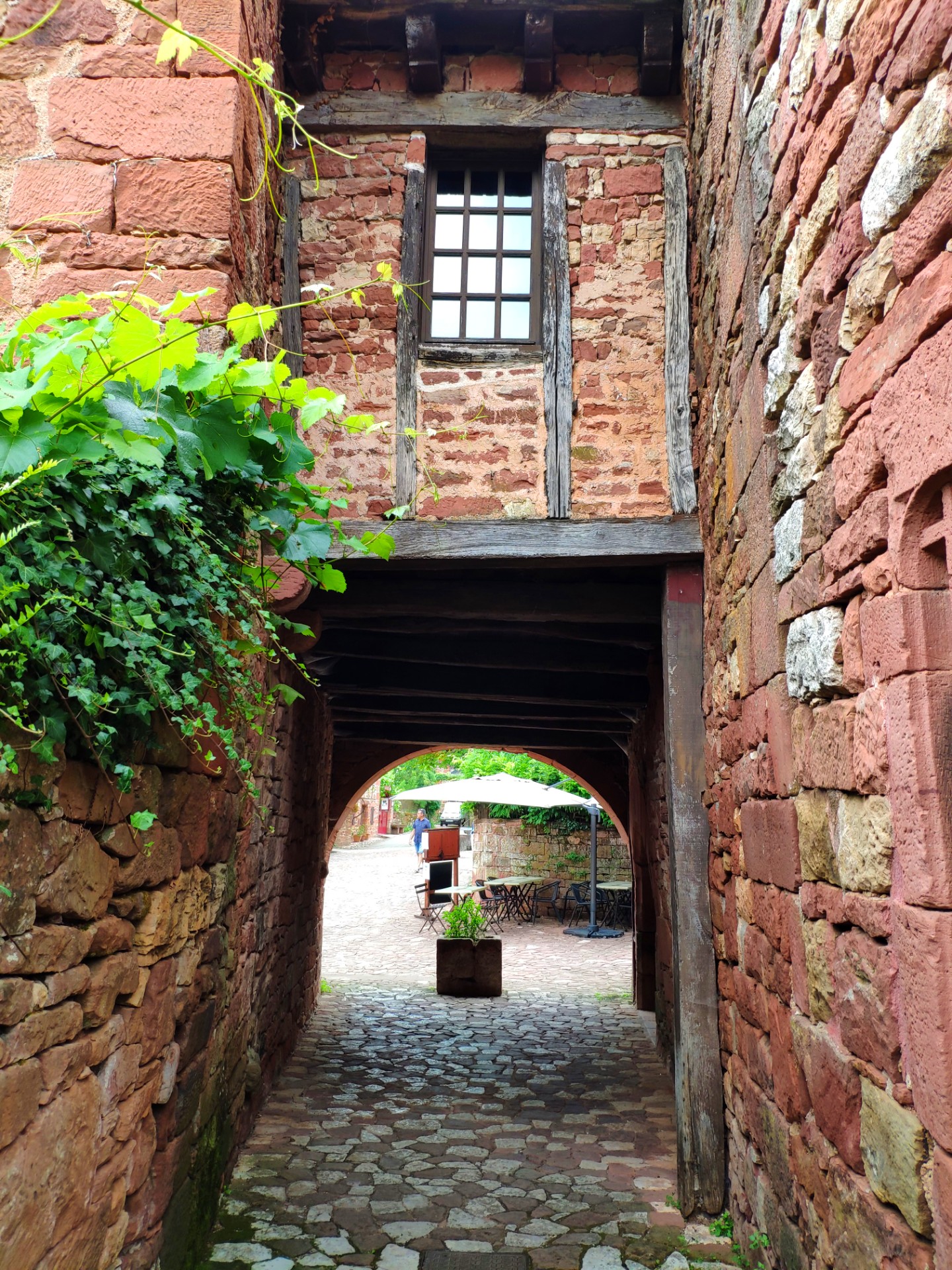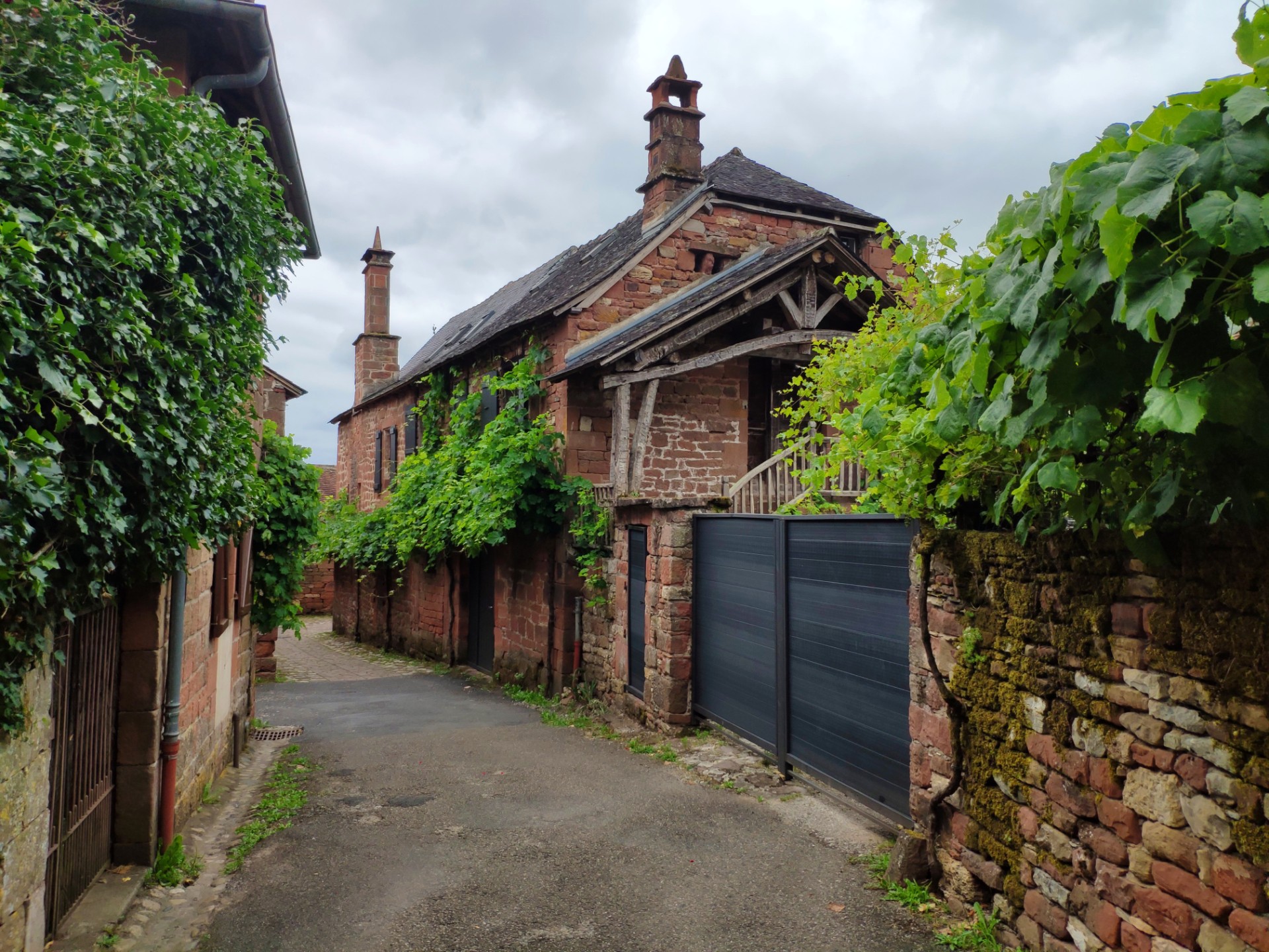 Le village porte vraiment bien son nom. Les maisons sont construites avec ces pierres rouges qui contrastent avec la végétation des jardins et certaines ont une tour qui ont été accolées aux maisons.
