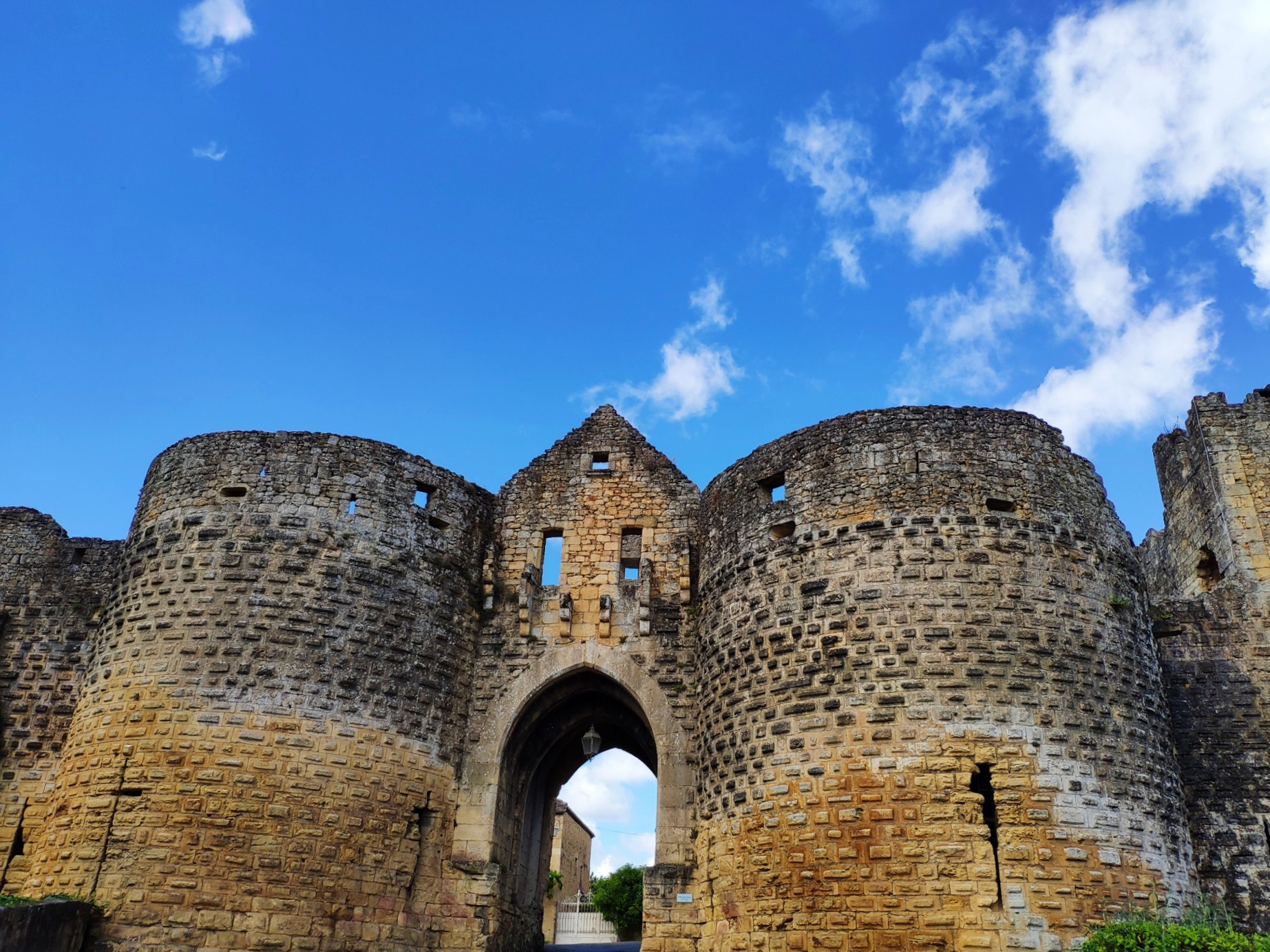 Pour cette journée nous retournons sur les bords de la Dordogne pour visiter trois villages. Encore une fois, la concentration de plus beaux villages de France dans ce coin de Périgord est impressionnante, dans ce petit périmètre de quelques kilomètres, se trouve quatre villages classés, et, mis à part la Roque Gageac que l’on a déjà visité le premier jour, nous allons descendre la Dordogne et faire étape dans les trois autres. Nous commençons par le village le plus à l’Est, Domme, qui se trouve être une citadelle fortifiée construite sur un piton rocheux elle aussi. La porte de la ville présente déjà un caractère défensif impressionnant avec ces deux grandes tours.