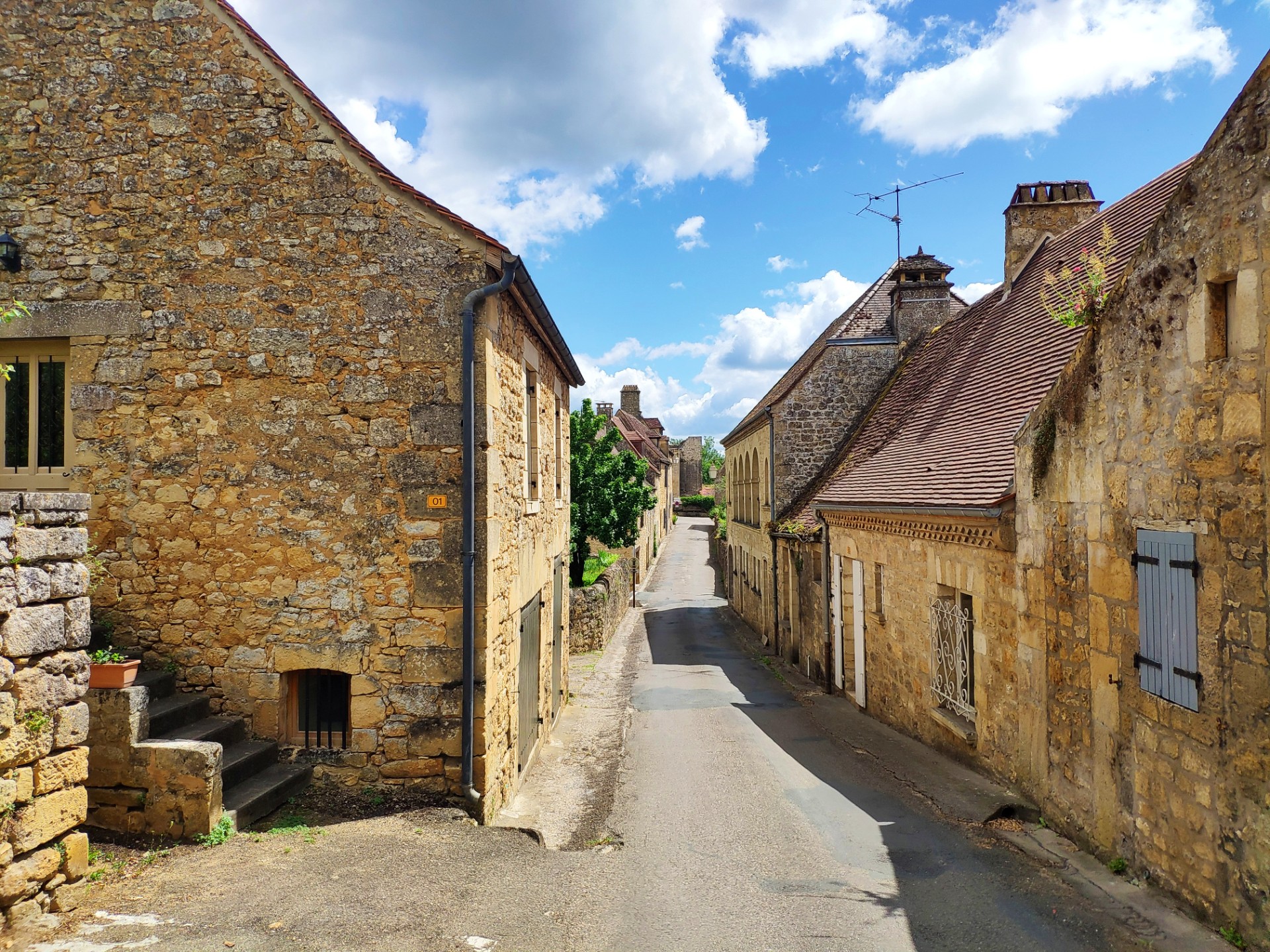 Il y a toujours une belle uniformité de couleurs dans ces villages du Périgord, certains sont dotés d’une tour comme celle-ci.