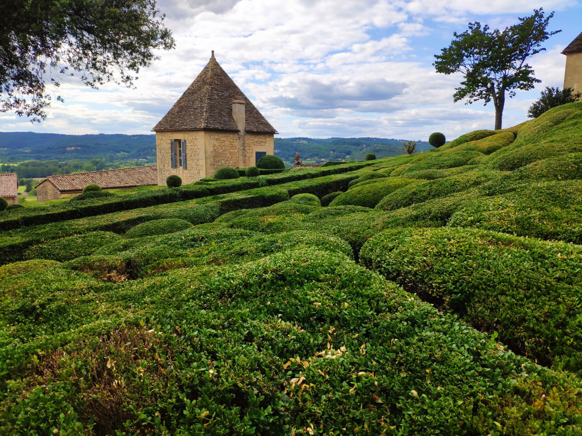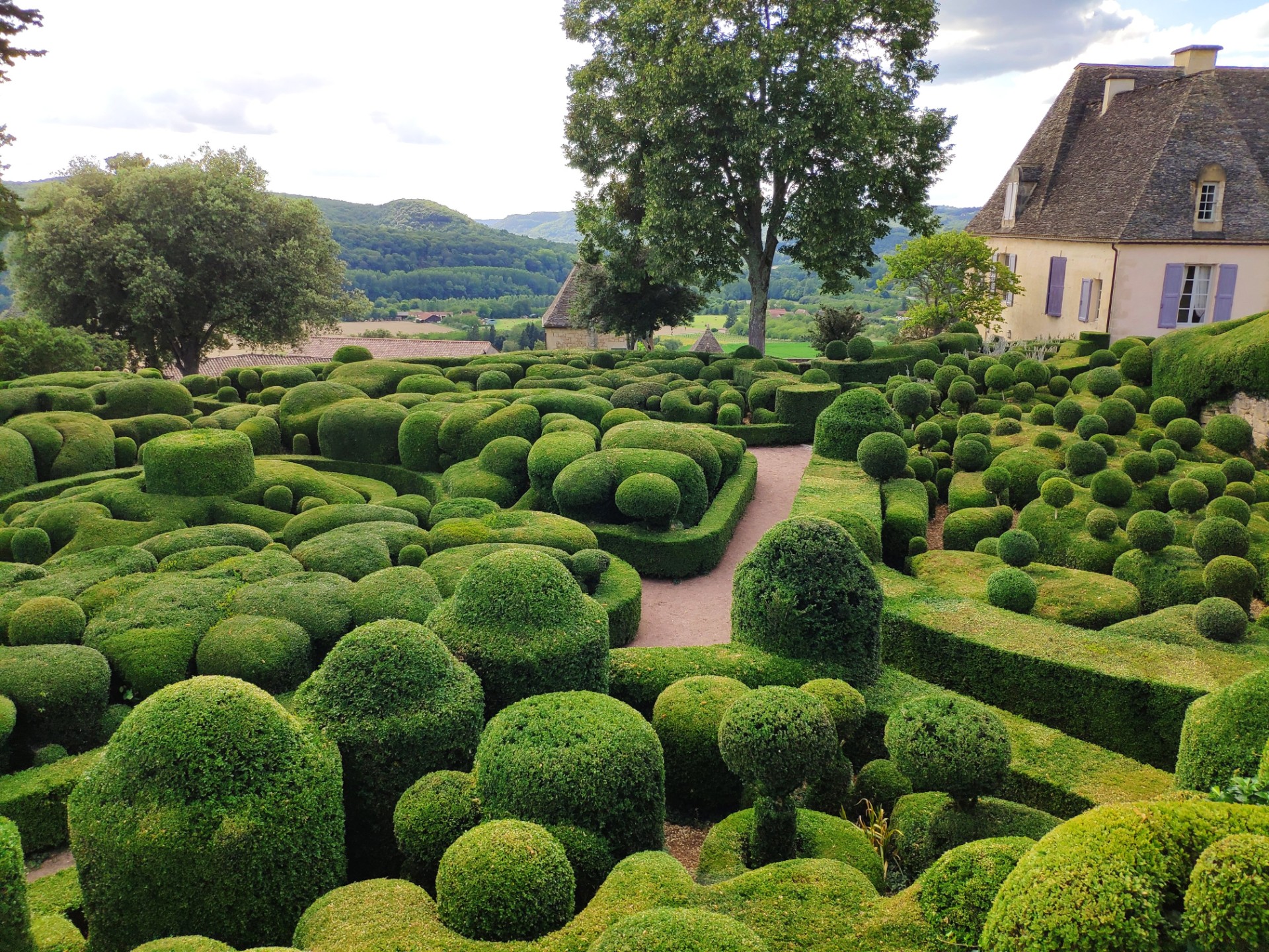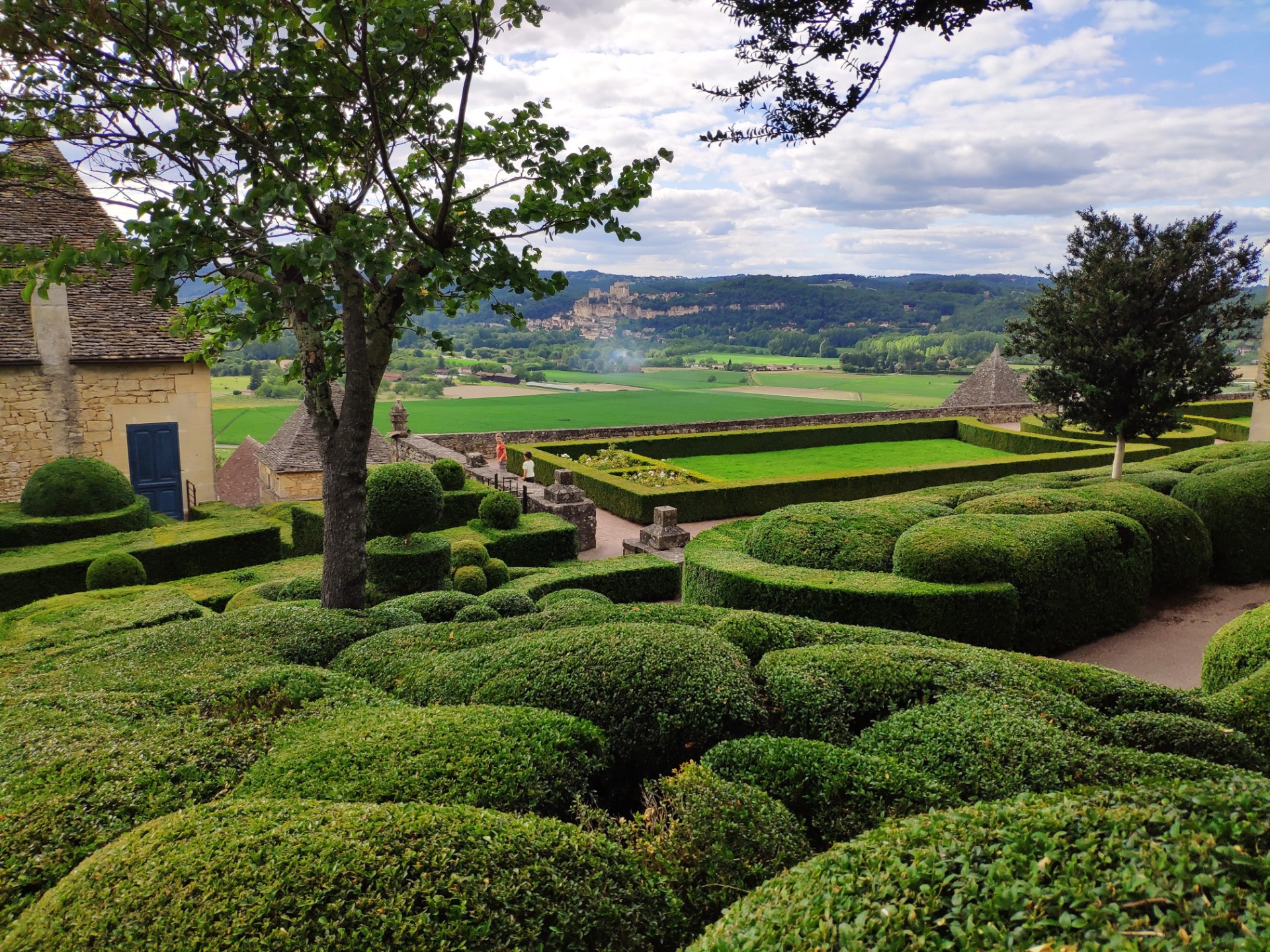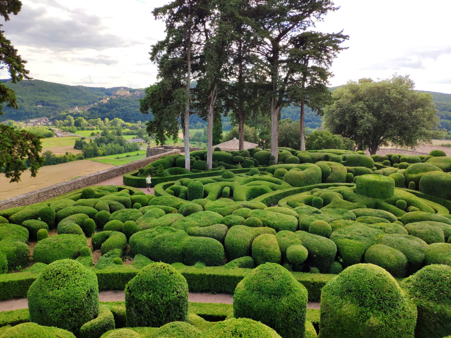 Les jardins sont superbement taillés et en arrière-plan, on peut apercevoir tous ces beaux villages que l’on a visité.